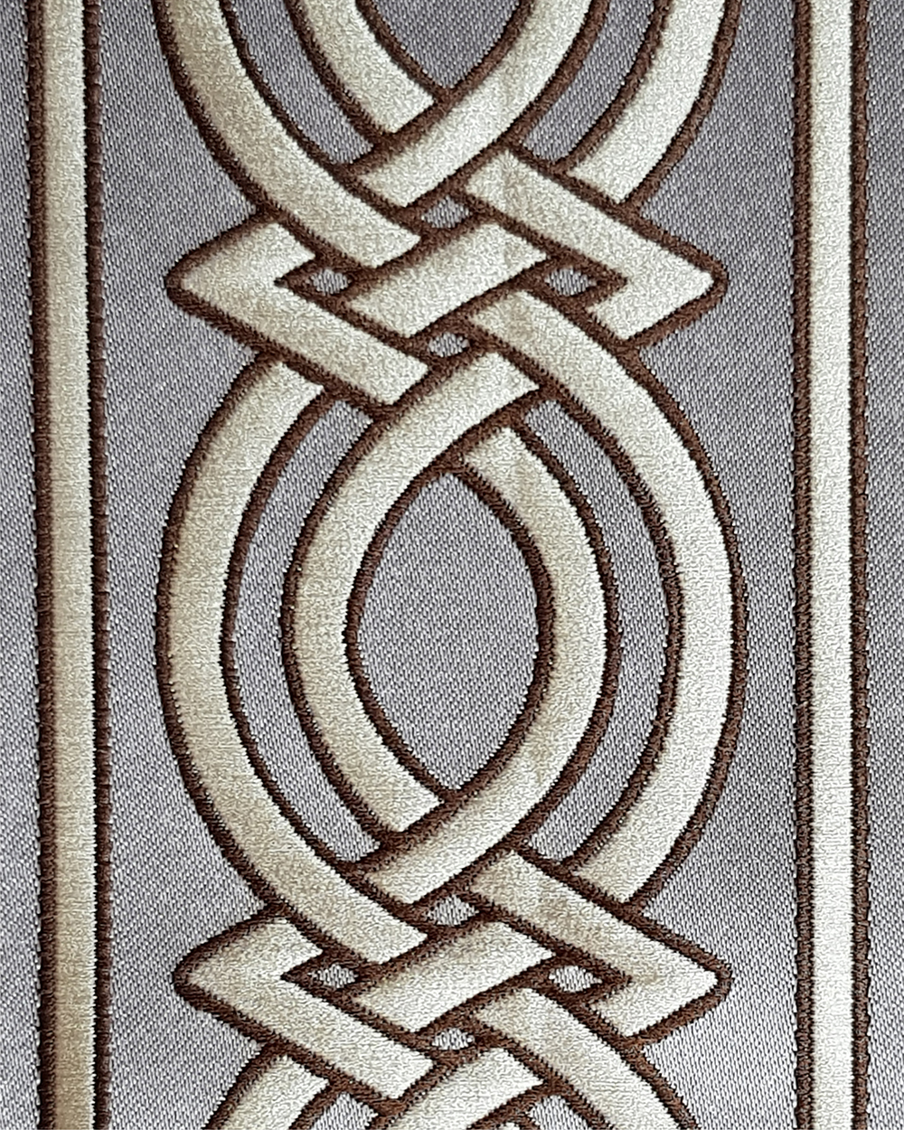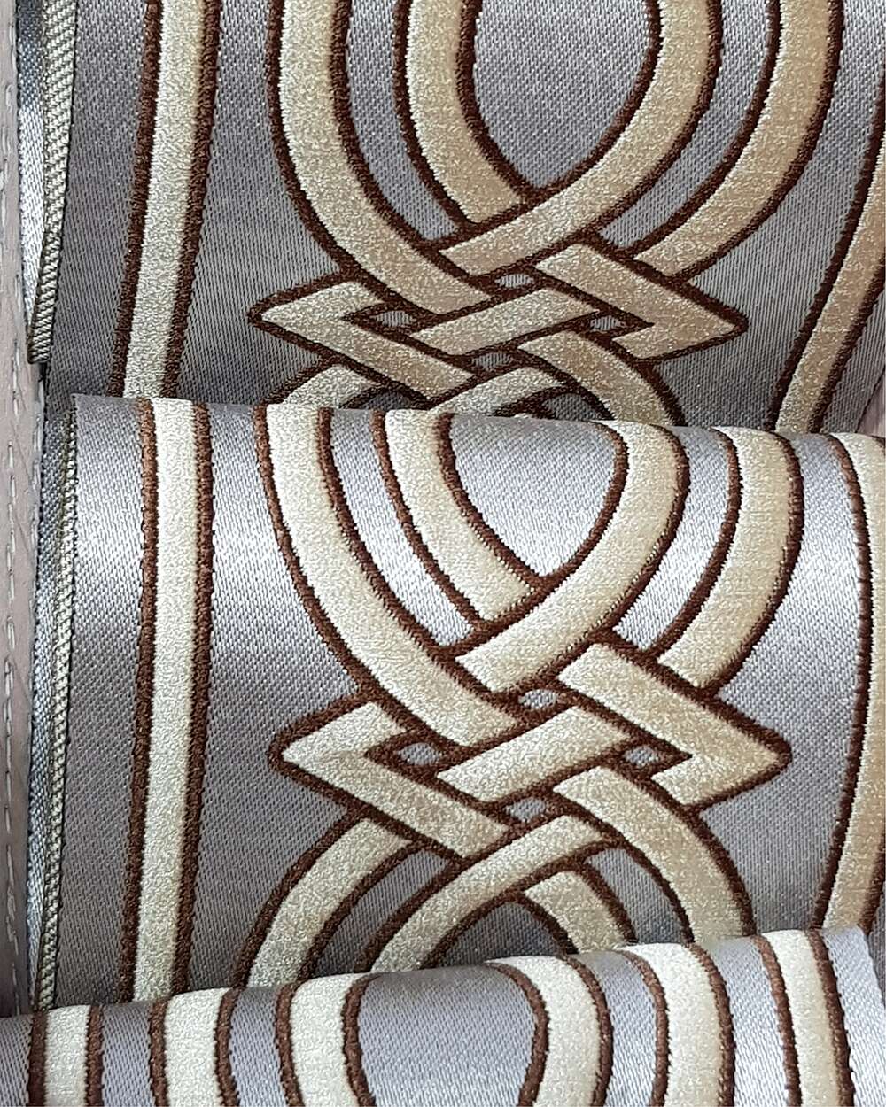 Bandă decorativă confecționată din 100% poliester. Lățimea acestei benzi este 10 cm. Pretul este pentru metru liniar.
