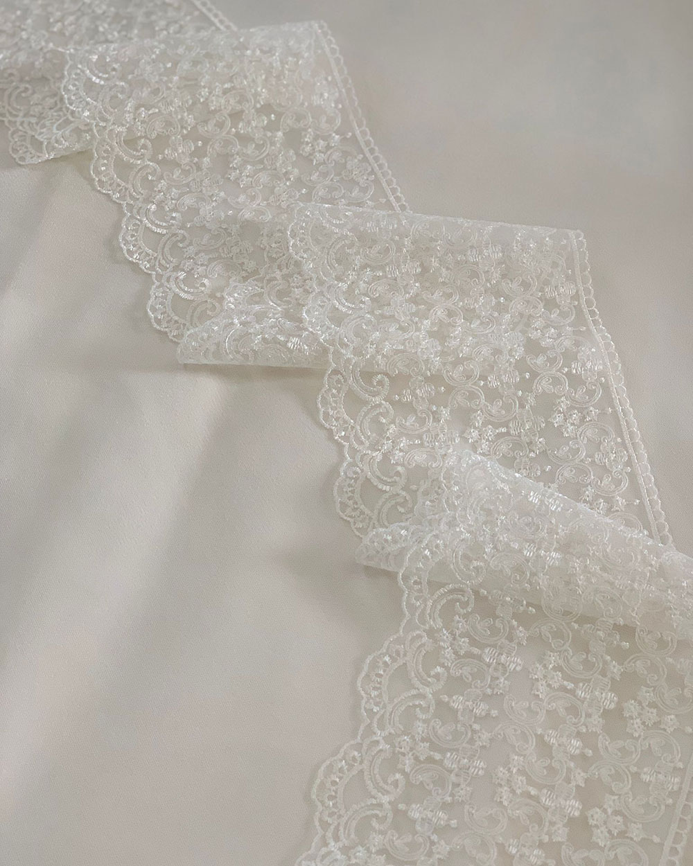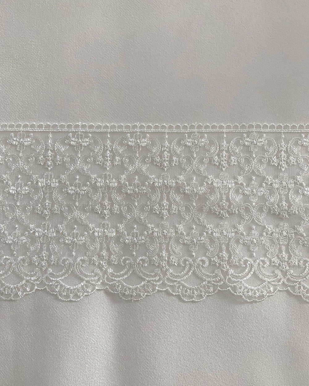 Danteluțele din colecția Firenze, în nuanțe și dimensiuni diverse, sunt utilizate pentru decorarea perdelelor.