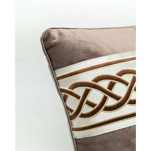 Fata de perna Bruxelles cu banda decorativa, 40 cm x 40 cm, maro gri