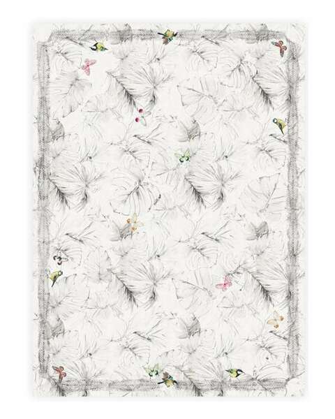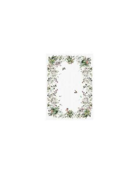 Față de masă Napoles Collection, alb cu imprimeu fluturi, frunze, păsări
