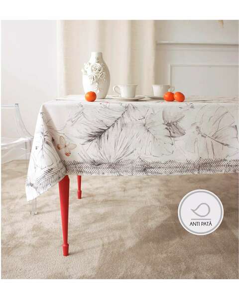 Față de masă Napoles Collection, alb cu imprimeu flori si fluturi