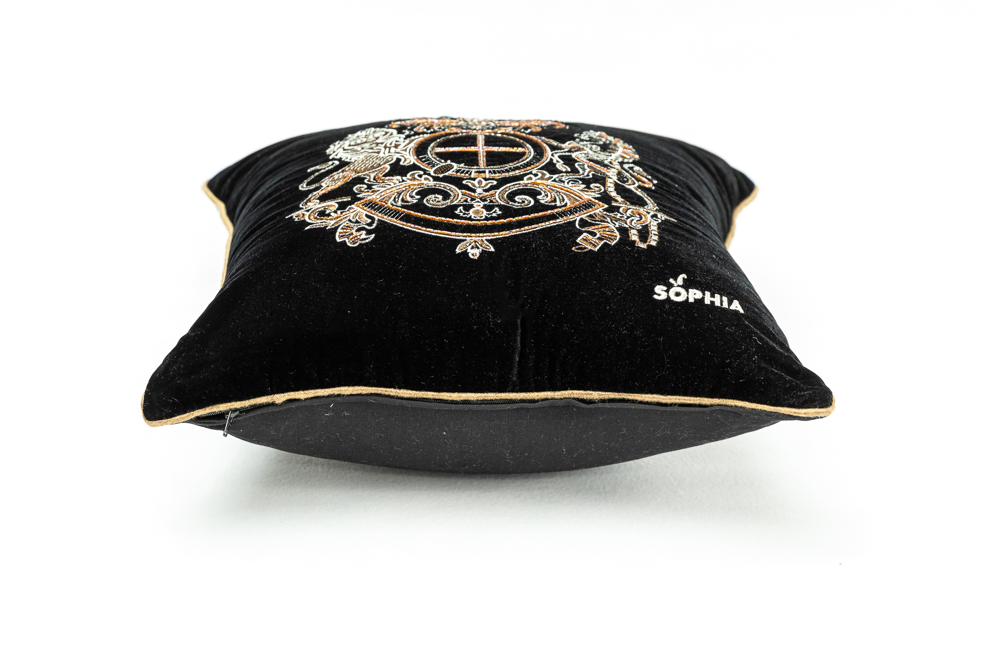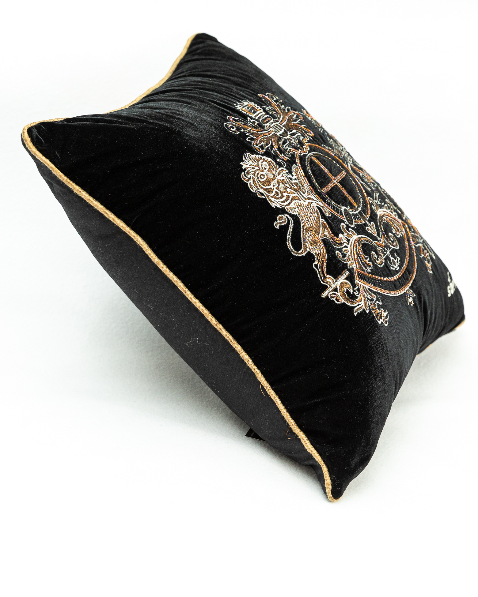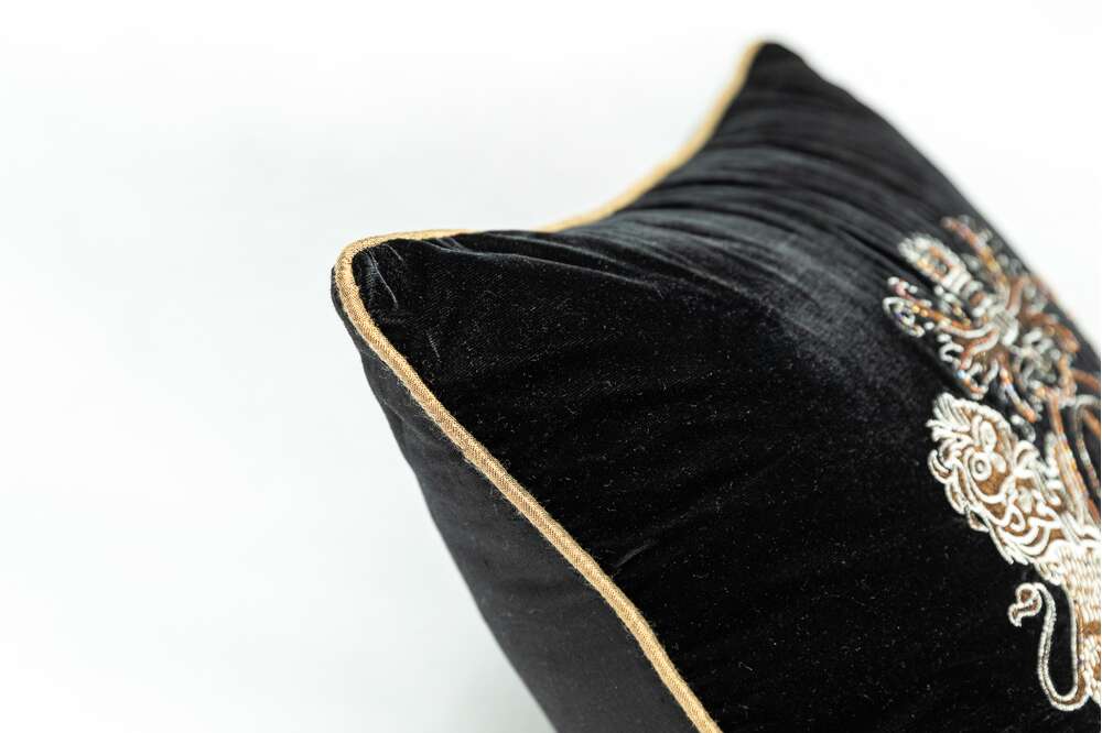 Față de pernă Maharajah brodată manual, 45 cm x 45 cm, negru, argintiu