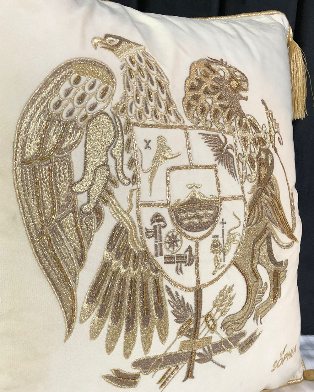 Fata de perna brodata manual Maharajah by Jaipur, 45x45 cm, crem cu broderie aurie