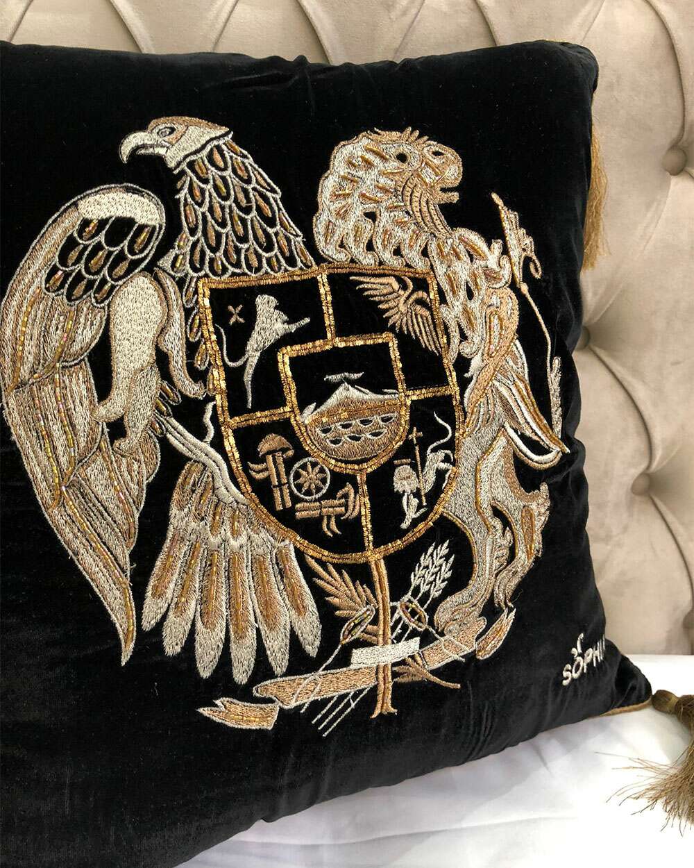Fata de perna brodata manual Maharajah by Jaipur, 45x45 cm, negru cu broderie aurie