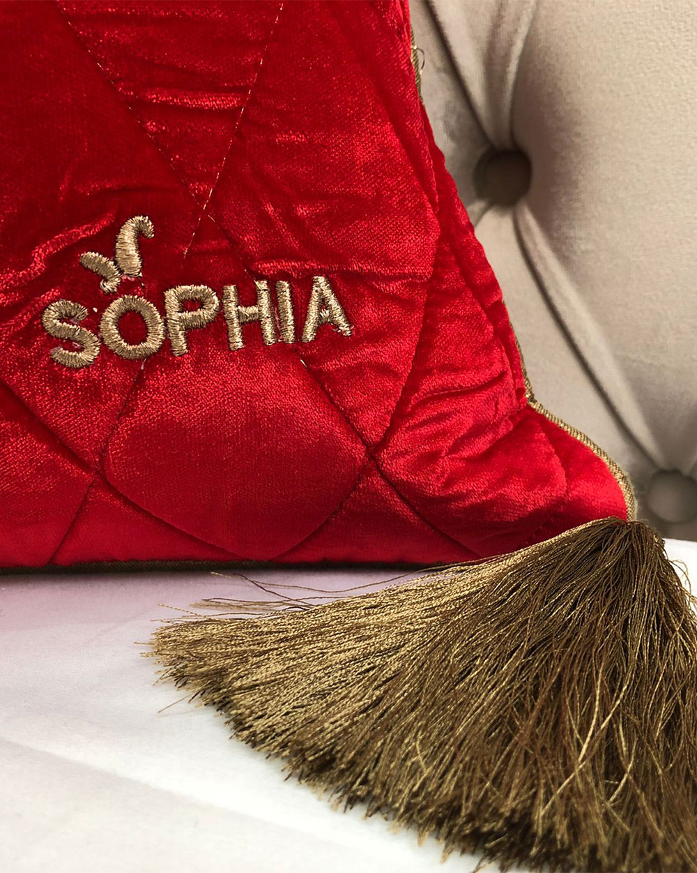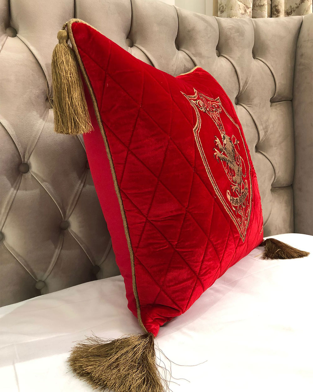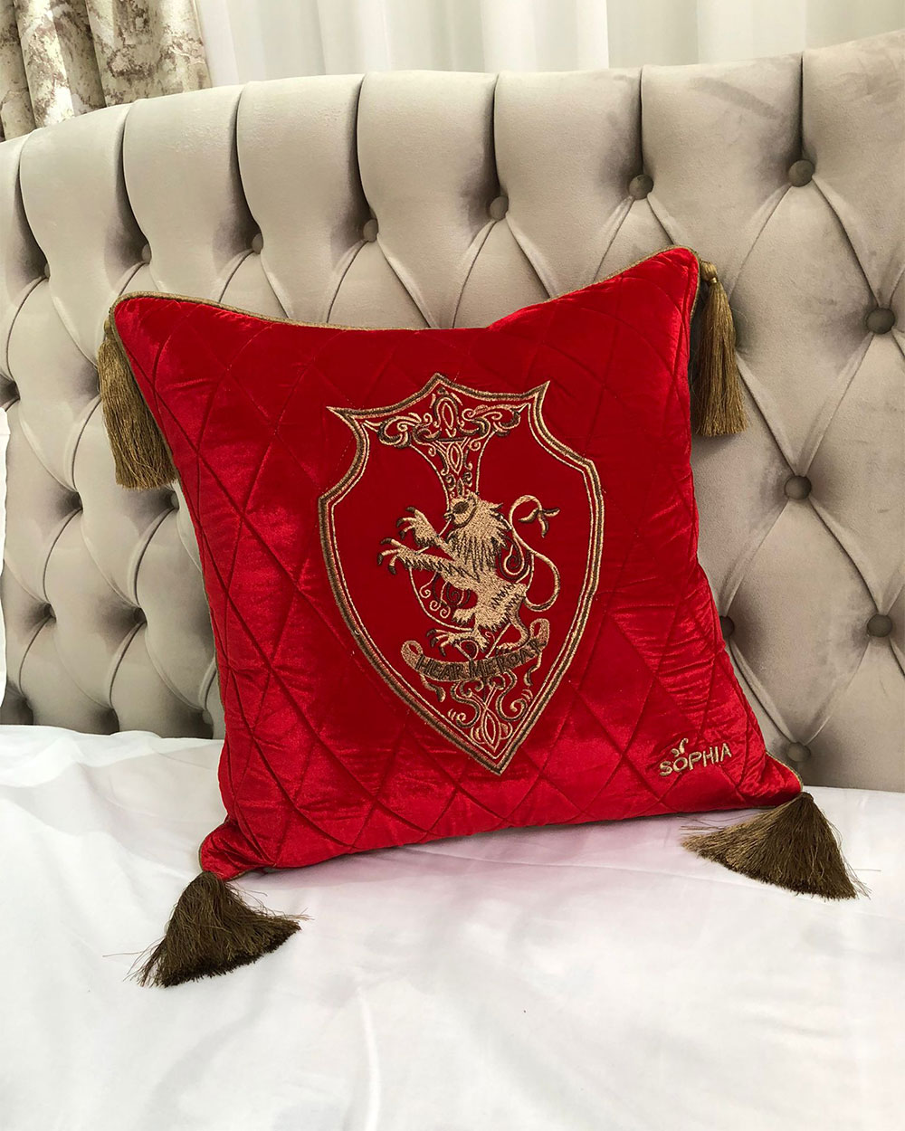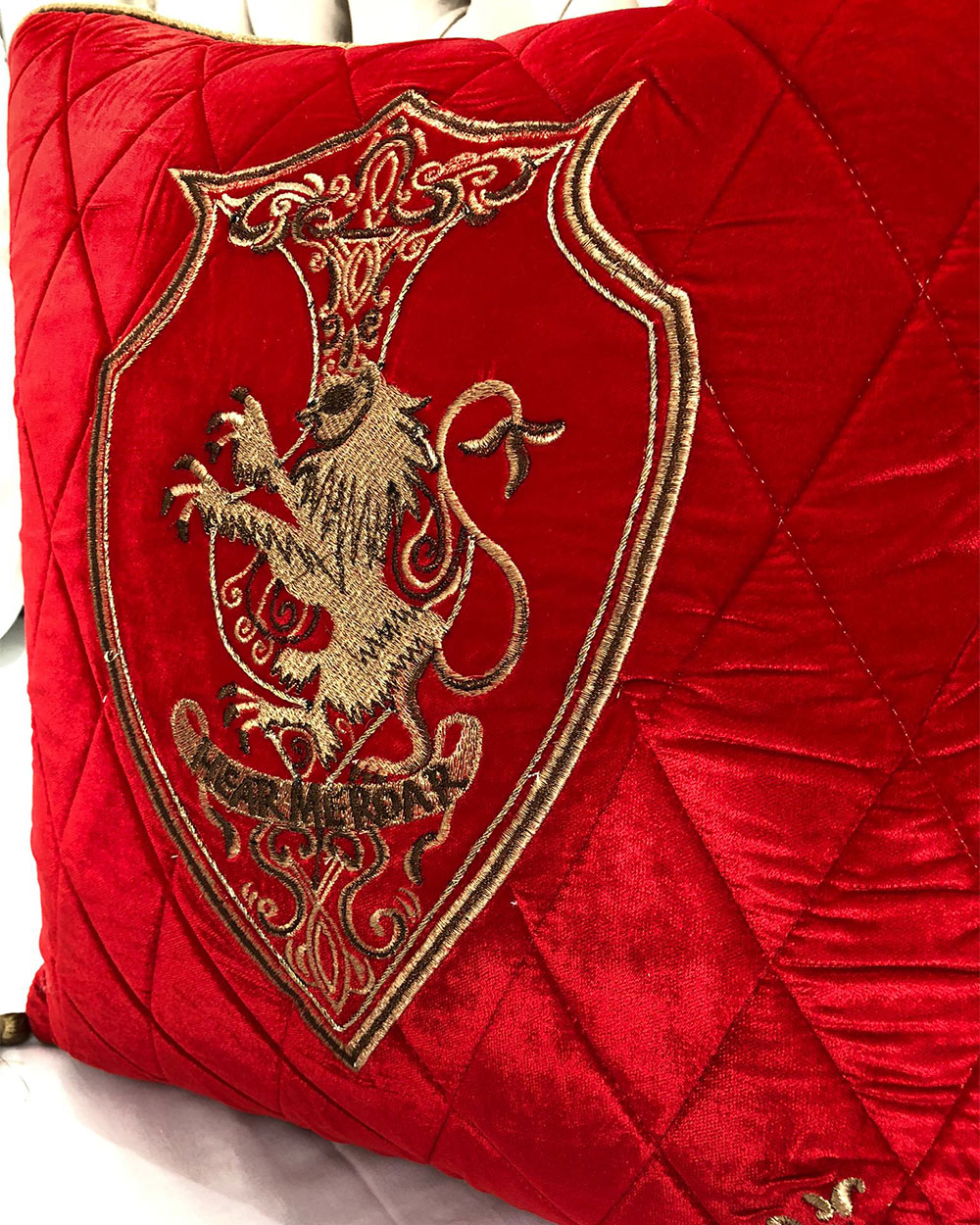 Fata de perna brodata manual Maharajah by Jaipur, 45x45 cm, rosu cu broderie aurie