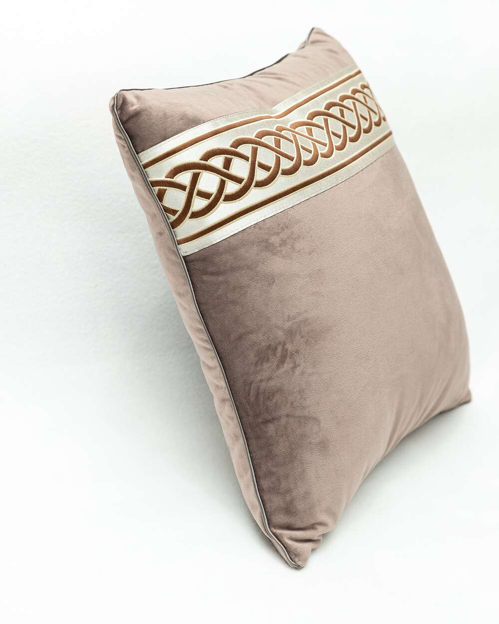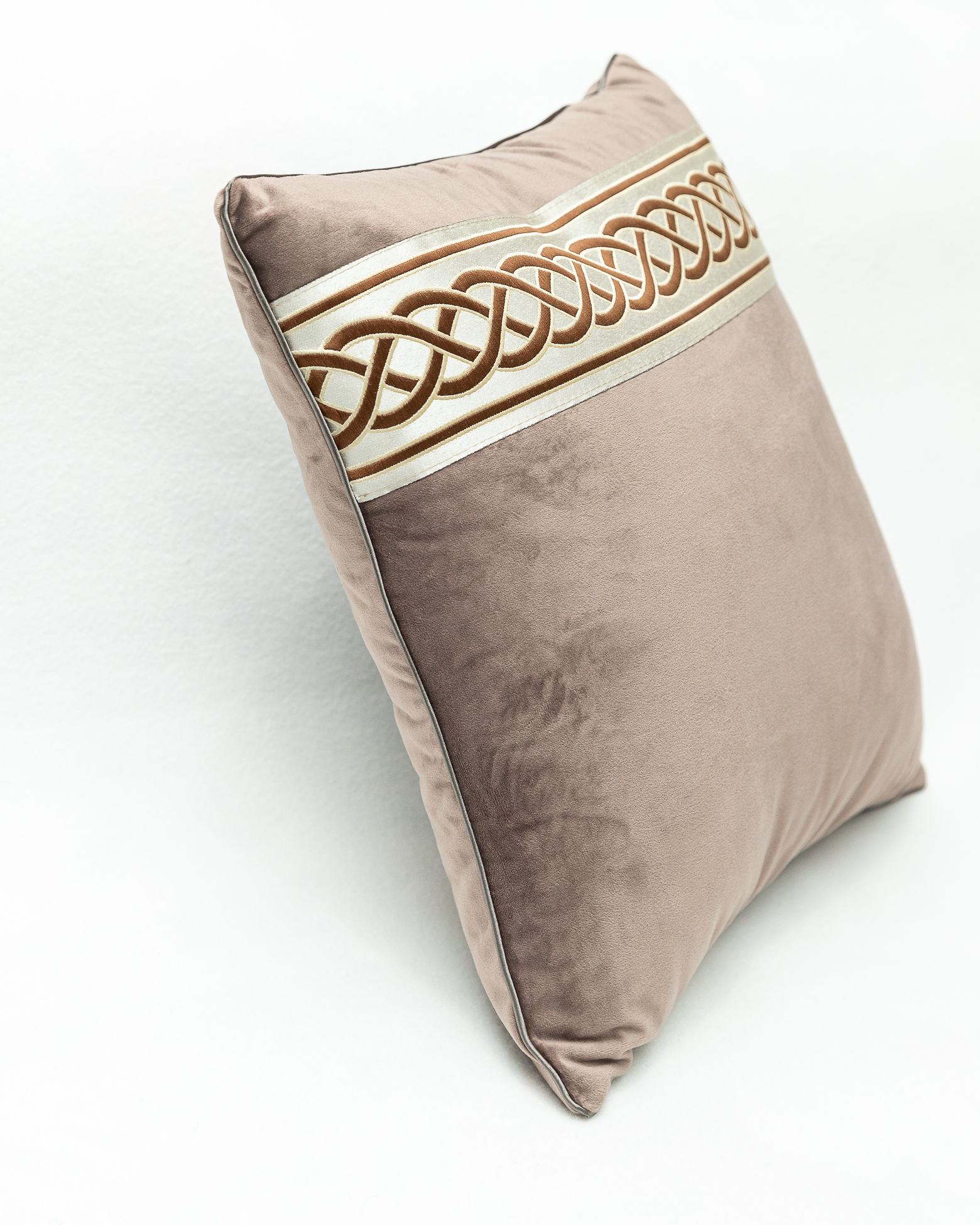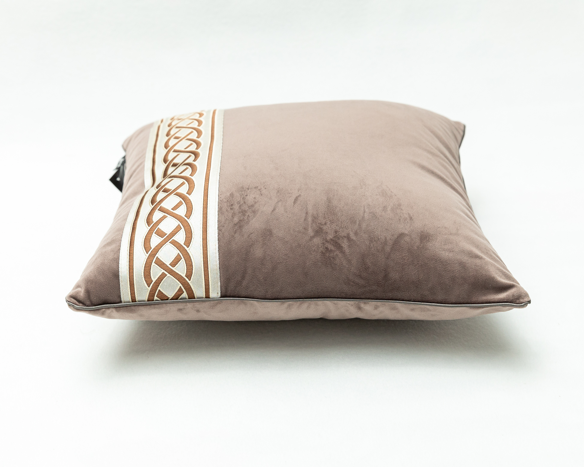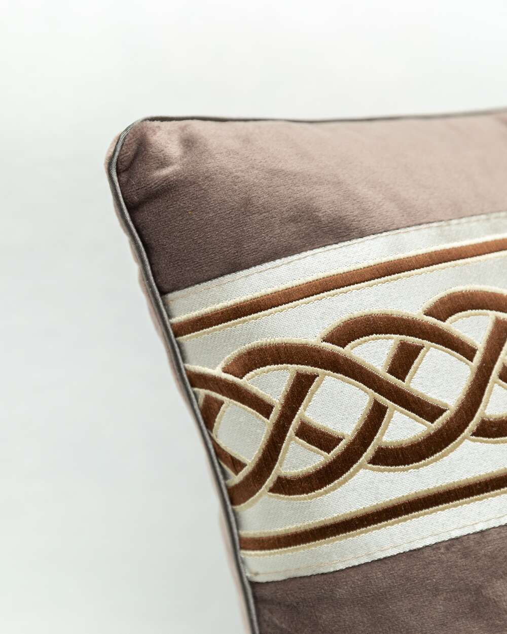 Fata de perna Bruxelles cu banda decorativa, 40 cm x 40 cm, maro gri