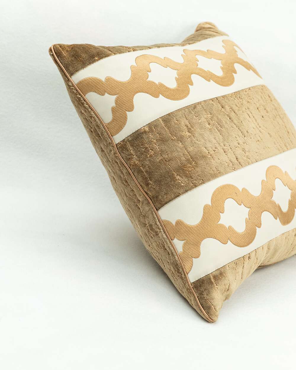 Fata de perna Montreal cu banda decorativa, 40 cm x 40 cm, auriu cu striatii