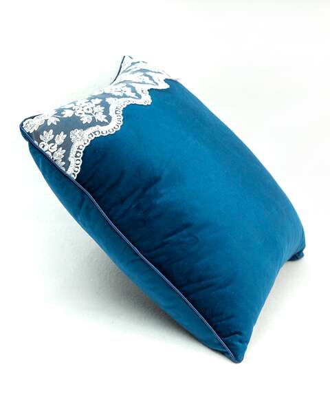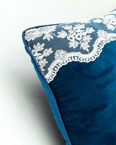 Fata de perna Bruxelles cu dantela aplicata, 40 cm x40 cm, albastru regal