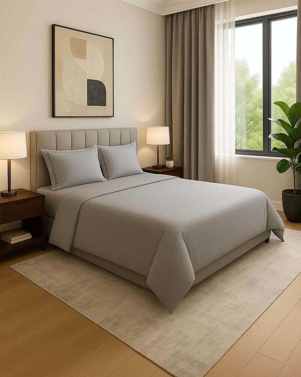 Lenjeria din bambus Lyocell reglează temperatura corpului, absoarbe umiditatea și previne mirosurile neplăcute, oferindu-ți un somn mai confortabil și mai sănătos. Este perfectă pentru orice sezon, datorită proprietăților sale respirabile și de reglare a temperaturii.