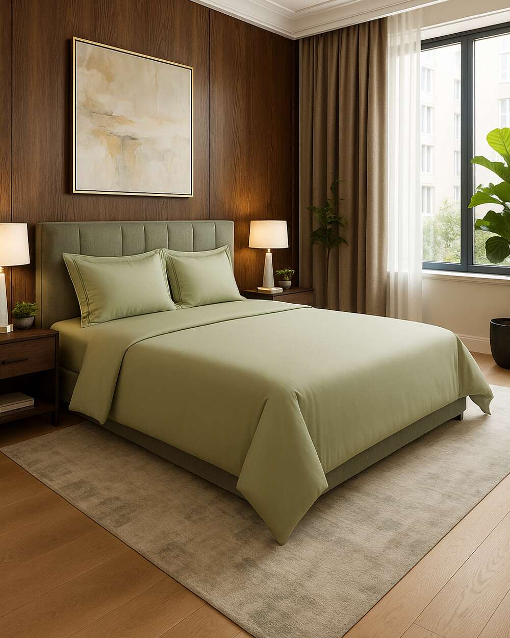 Lenjerie de pat 100% bambus Lyocell organic, Hawaii Bamboo, olive green, 300 tc