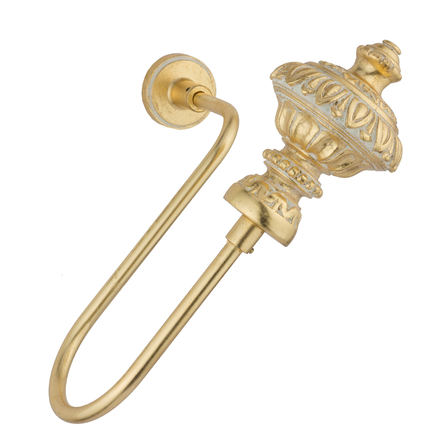 Butonul de perete din colecția Palas este un accesoriu decorativ elegant, realizat într-un stil clasic, inspirat de arhitectura palatelor europene. Creat pentru a completa tije și galerii pentru perdele, acest element ornamental oferă un plus de rafinament și stabilitate, integrându-se perfect în interioare luxoase sau amenajări tradiționale.