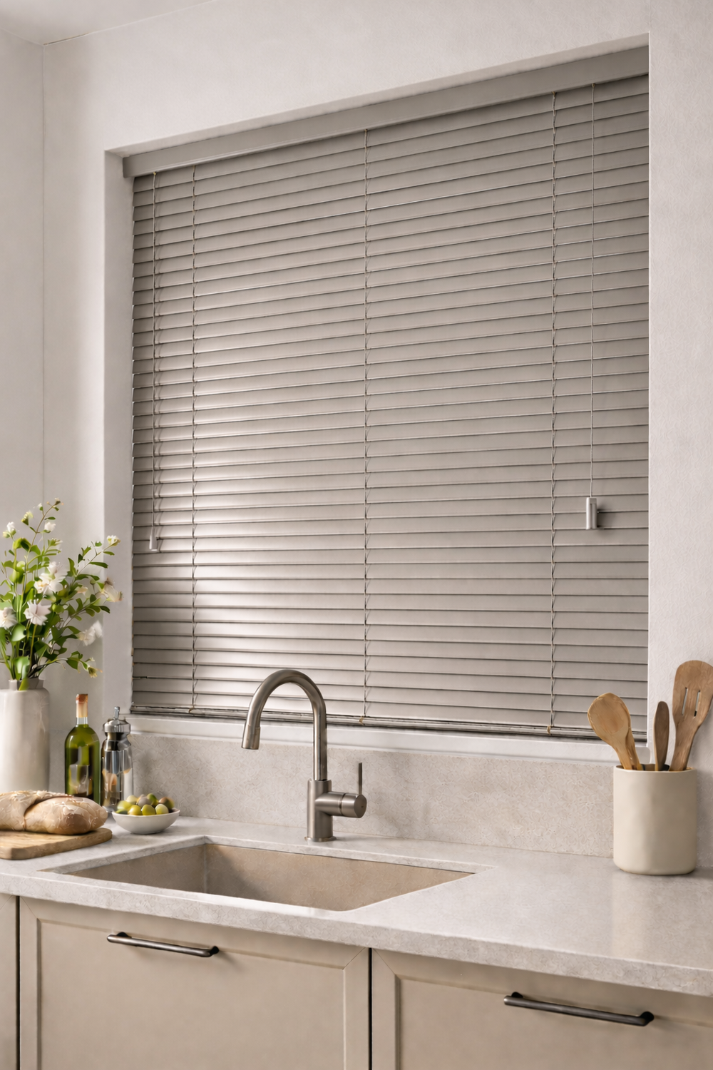 Jaluzelele orizontale din aluminiu cu lamelă de 50 mm sunt o alegere practică și elegantă pentru orice spațiu. Oferă control precis asupra luminii și intimității, fiind în același timp ușor de întreținut și foarte rezistente în timp. Datorită aluminiului, sunt ideale inclusiv în încăperi cu umiditate crescută, precum bucătăria sau baia.