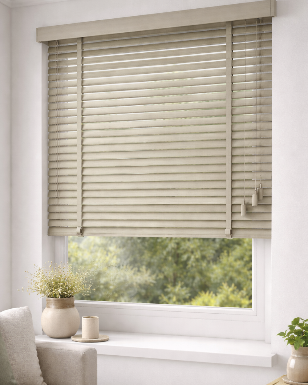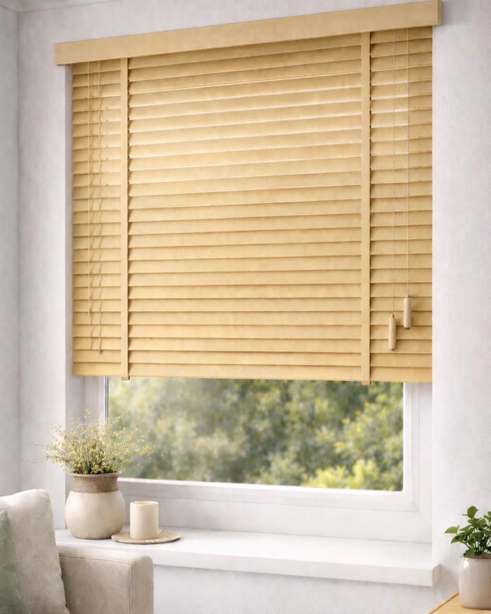 Lamelele de 50 mm permit o reglare precisă a luminii și a intimității, iar finisajele în nuanțe de tei mat adaugă un plus de eleganță și luminozitate oricărui spațiu. Această jaluzea se integrează armonios în livinguri, dormitoare, birouri sau spații comerciale, oferind un design natural și atemporal.
