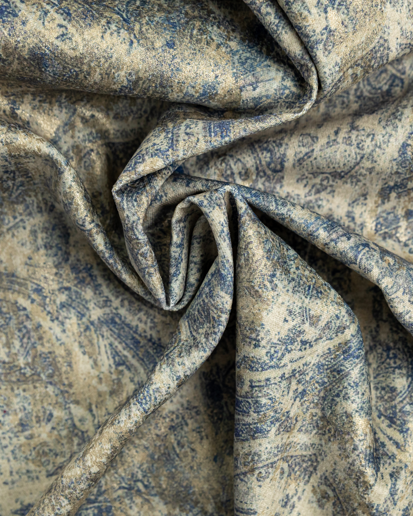 Tesatura draperie Gibraltar, print abstract, crem albastru