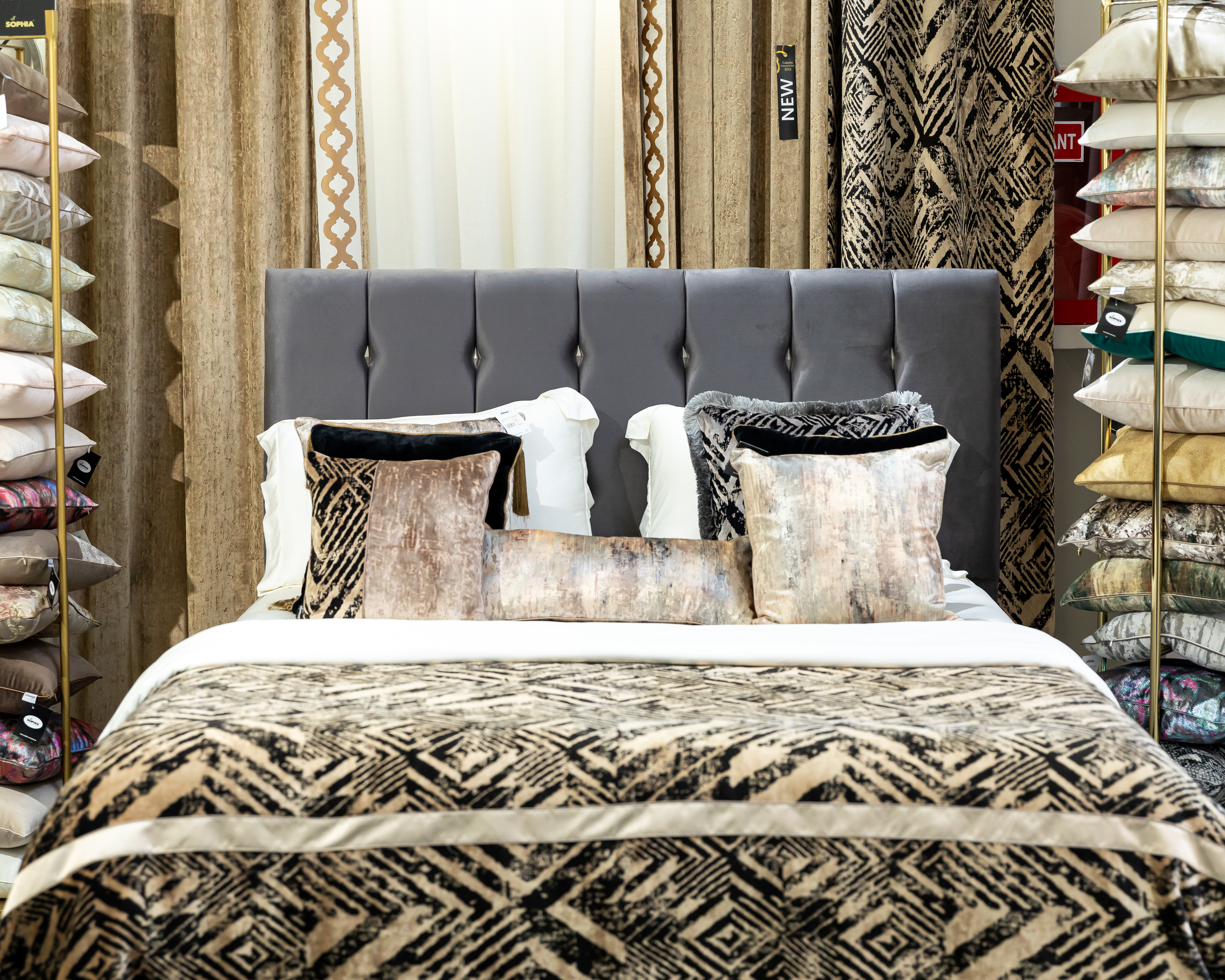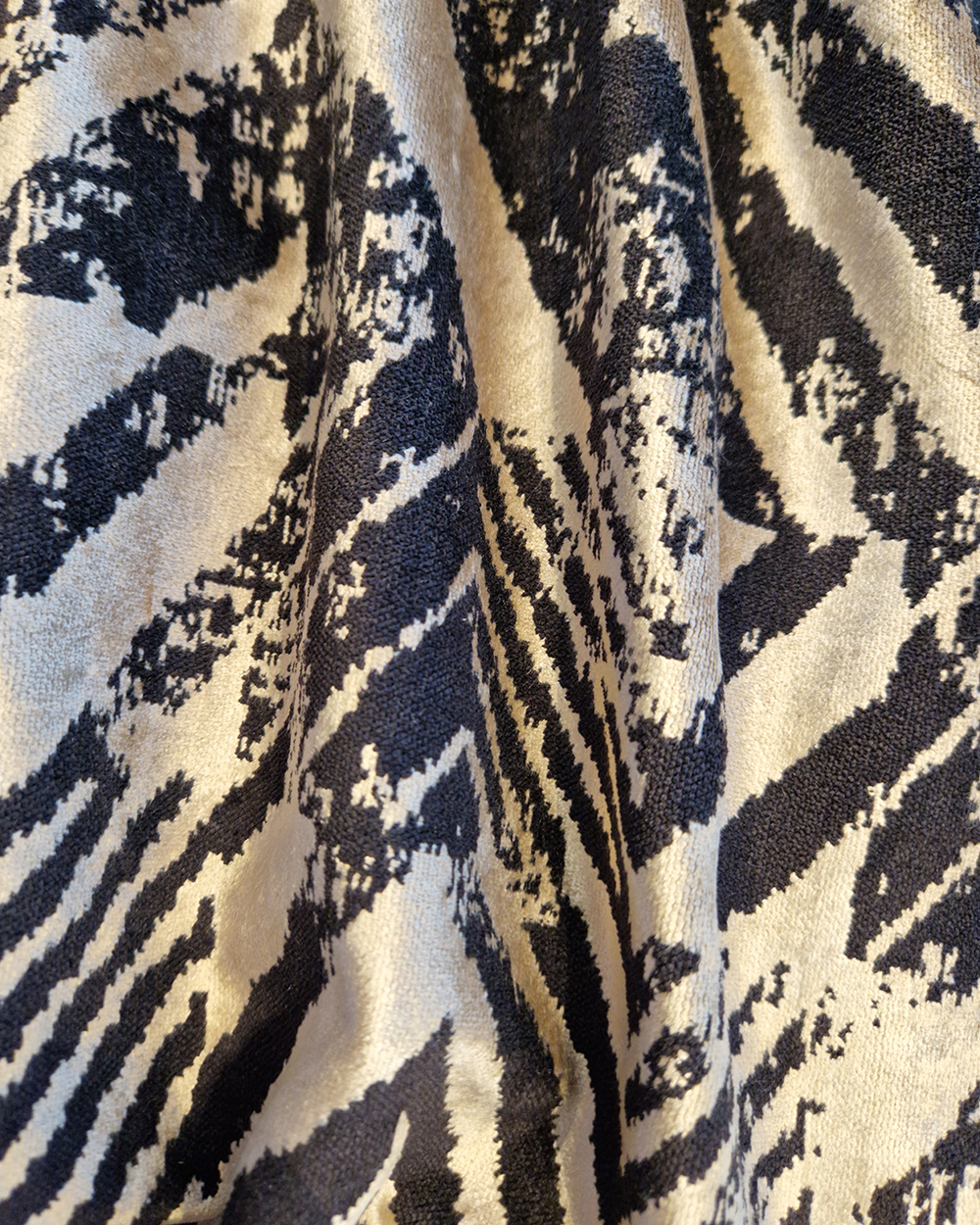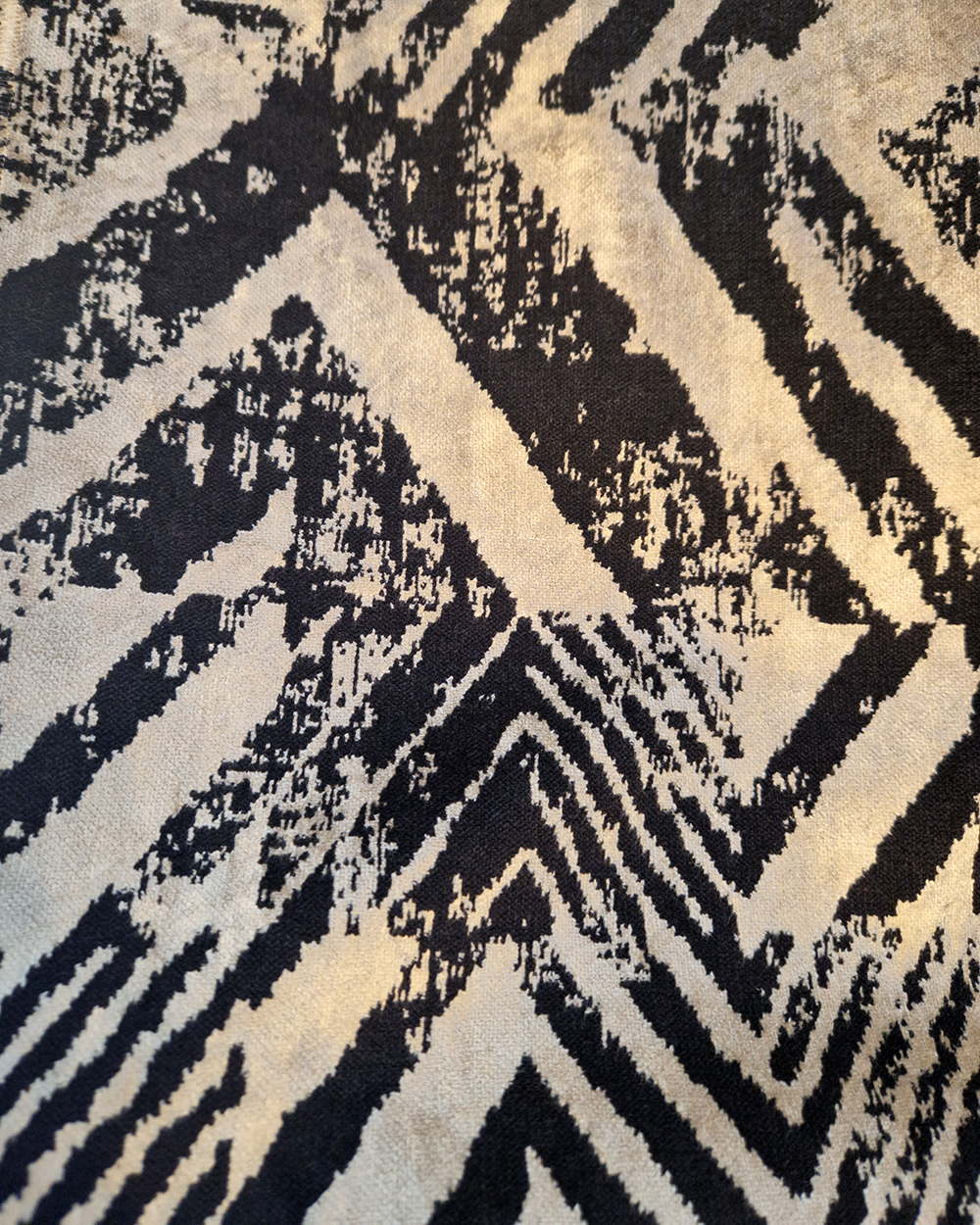 Tesatura draperie Montreal cu motive geometrice, auriu cu negru
