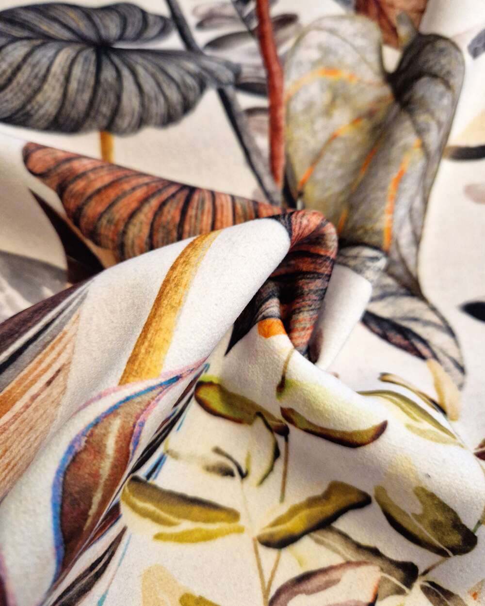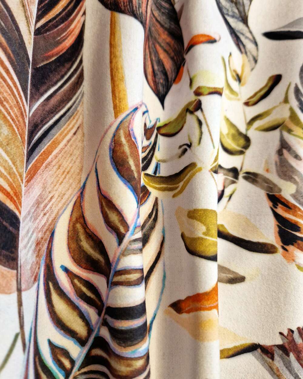 Tesatura draperie New Orleans, fundal alb cu frunze