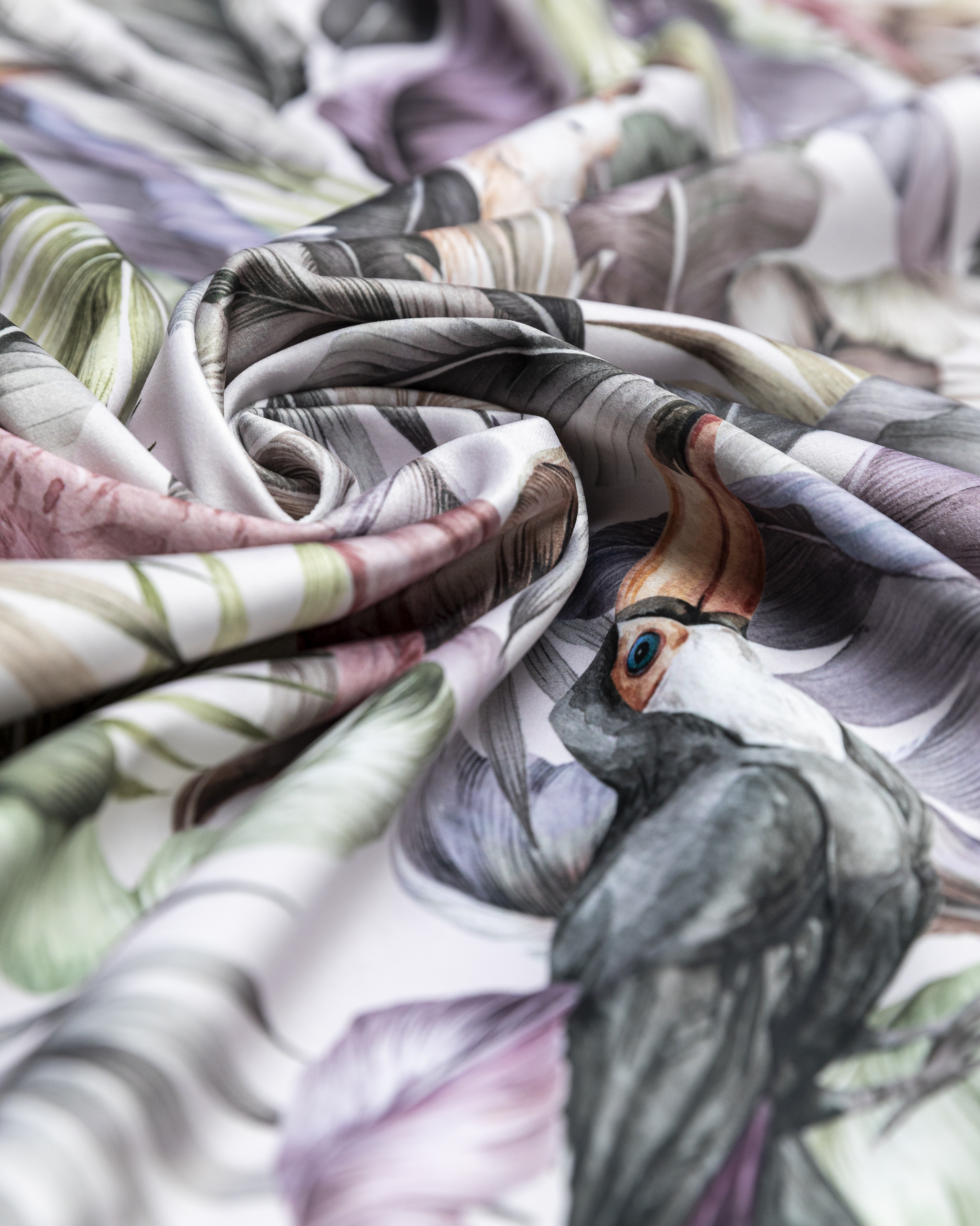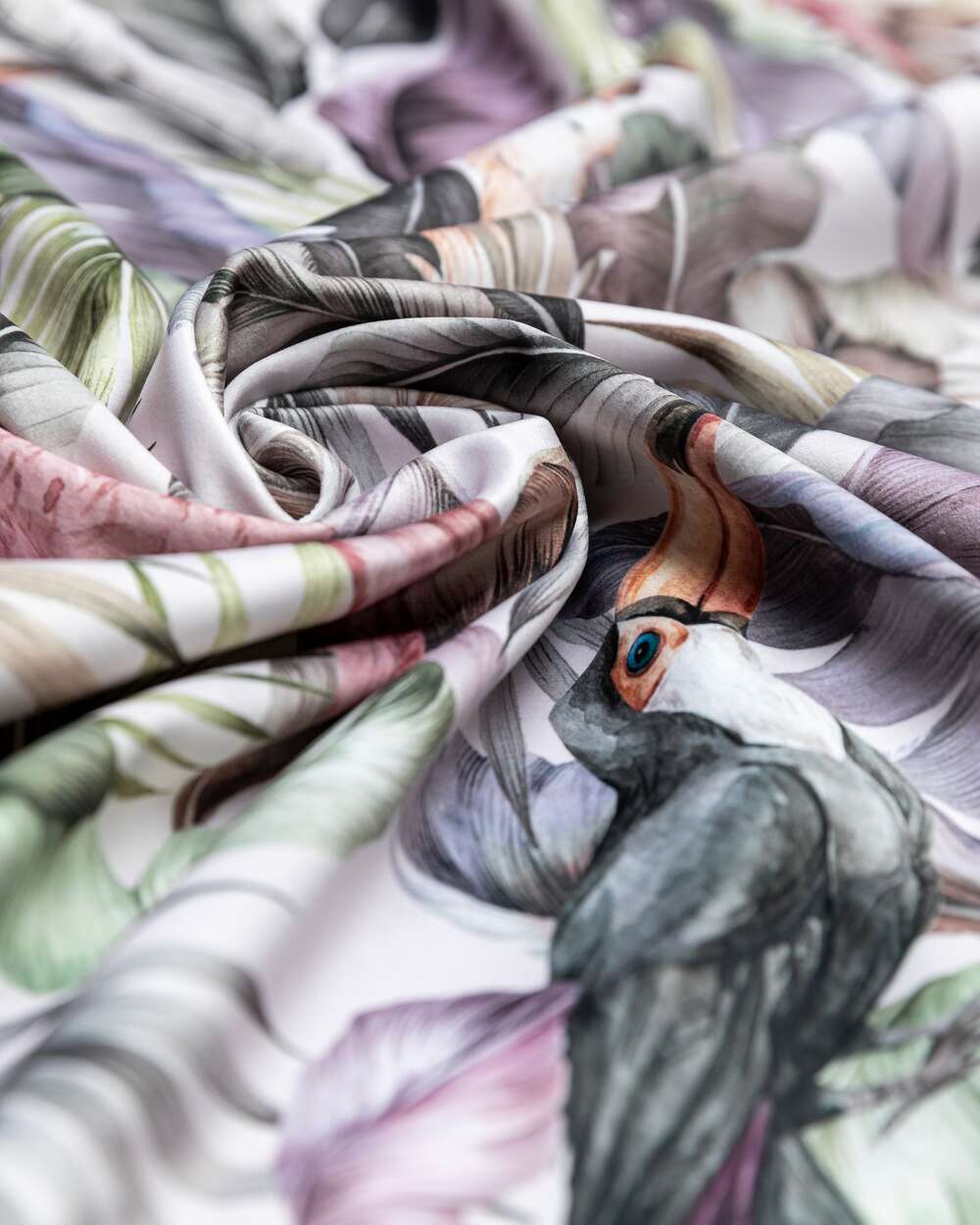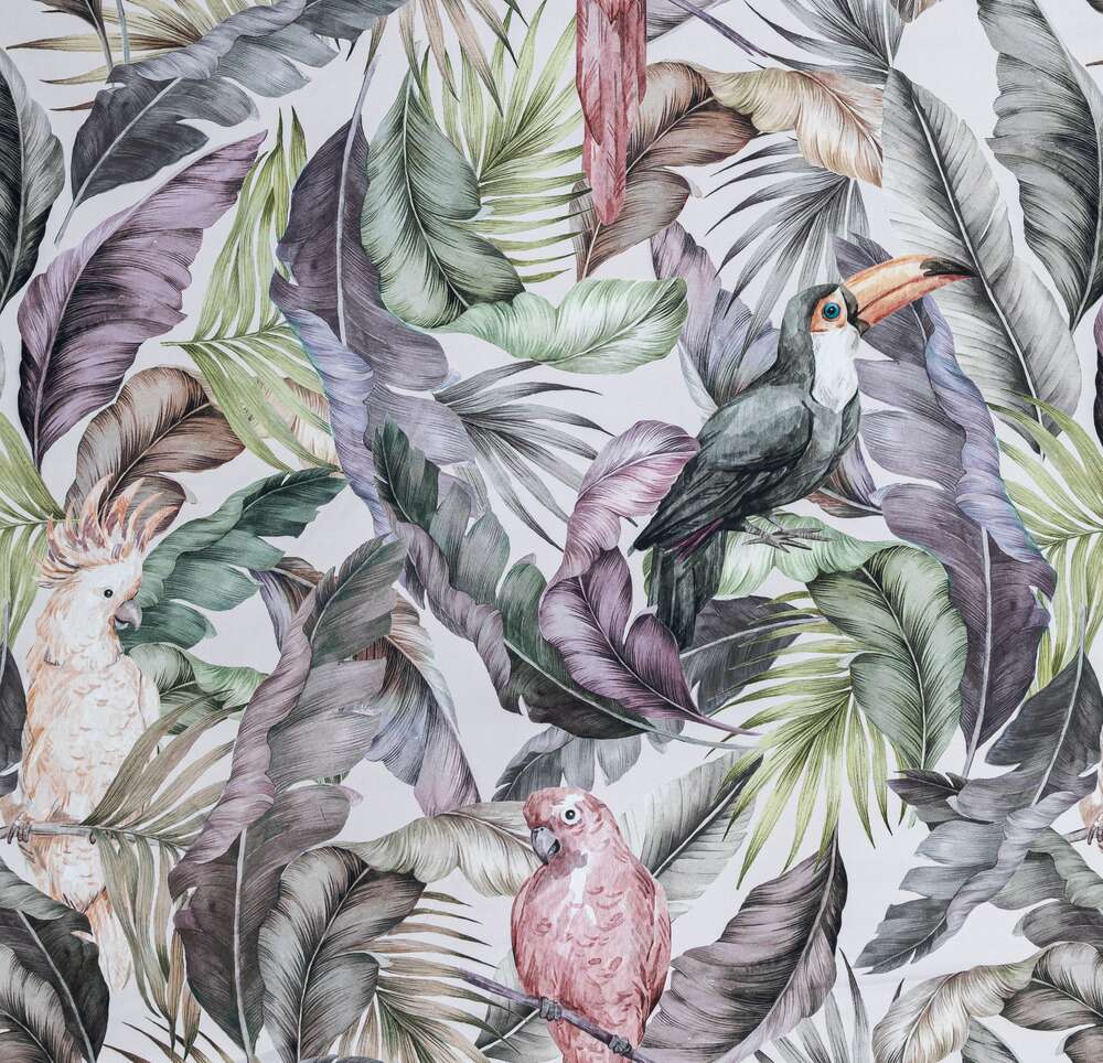 Tesatura draperie Veracruz, fundal alb cu pasari