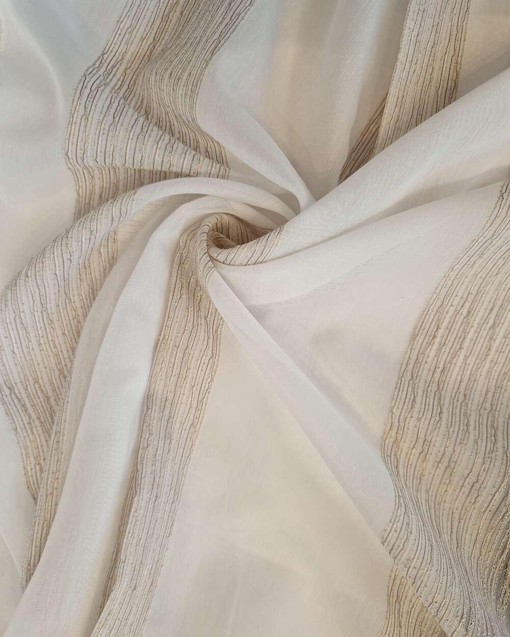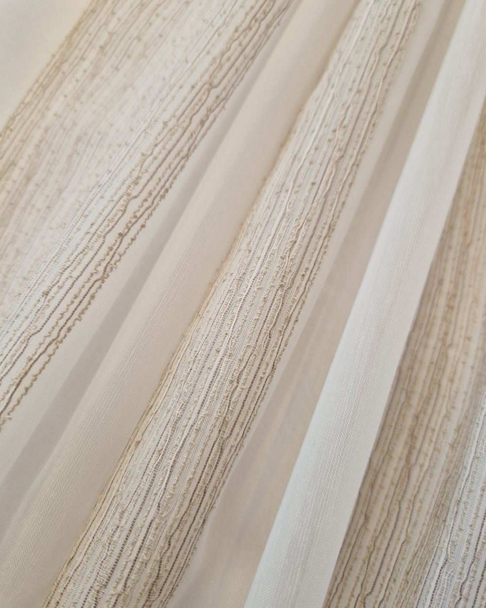Tesatura perdea cu dungi late, alb cappuccino, fara fir plumb, Puerto Rico