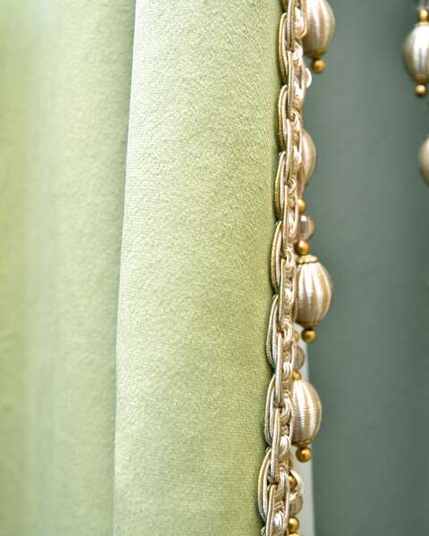 Draperie Chicago, 130 cm x 272 cm, catifea, dublată, cu pasmanterie, verde