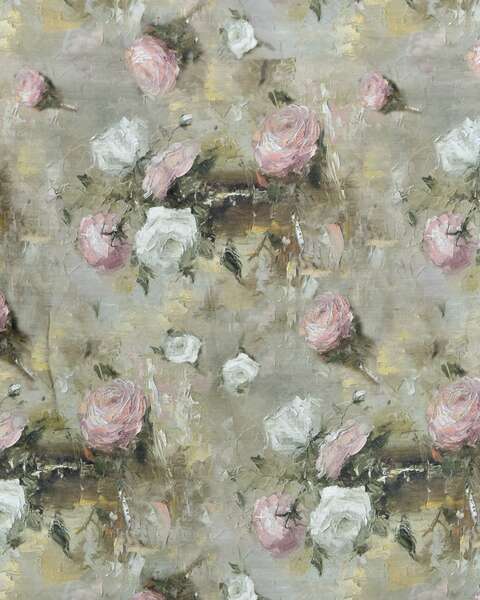 Tesatura draperie Floral Paintings, fumuriu, roz, alb