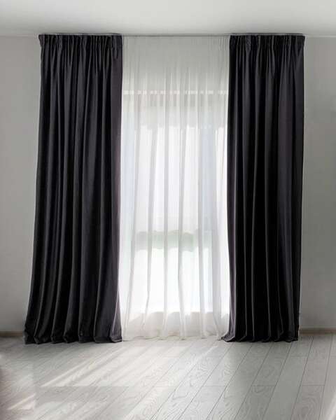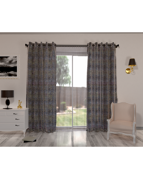 Tesatura draperie Vigo, tafta, negru/argintiu, cu zulufi