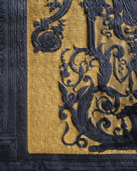 Tesatura draperie Vigo, negru auriu, tafta cu zulufi