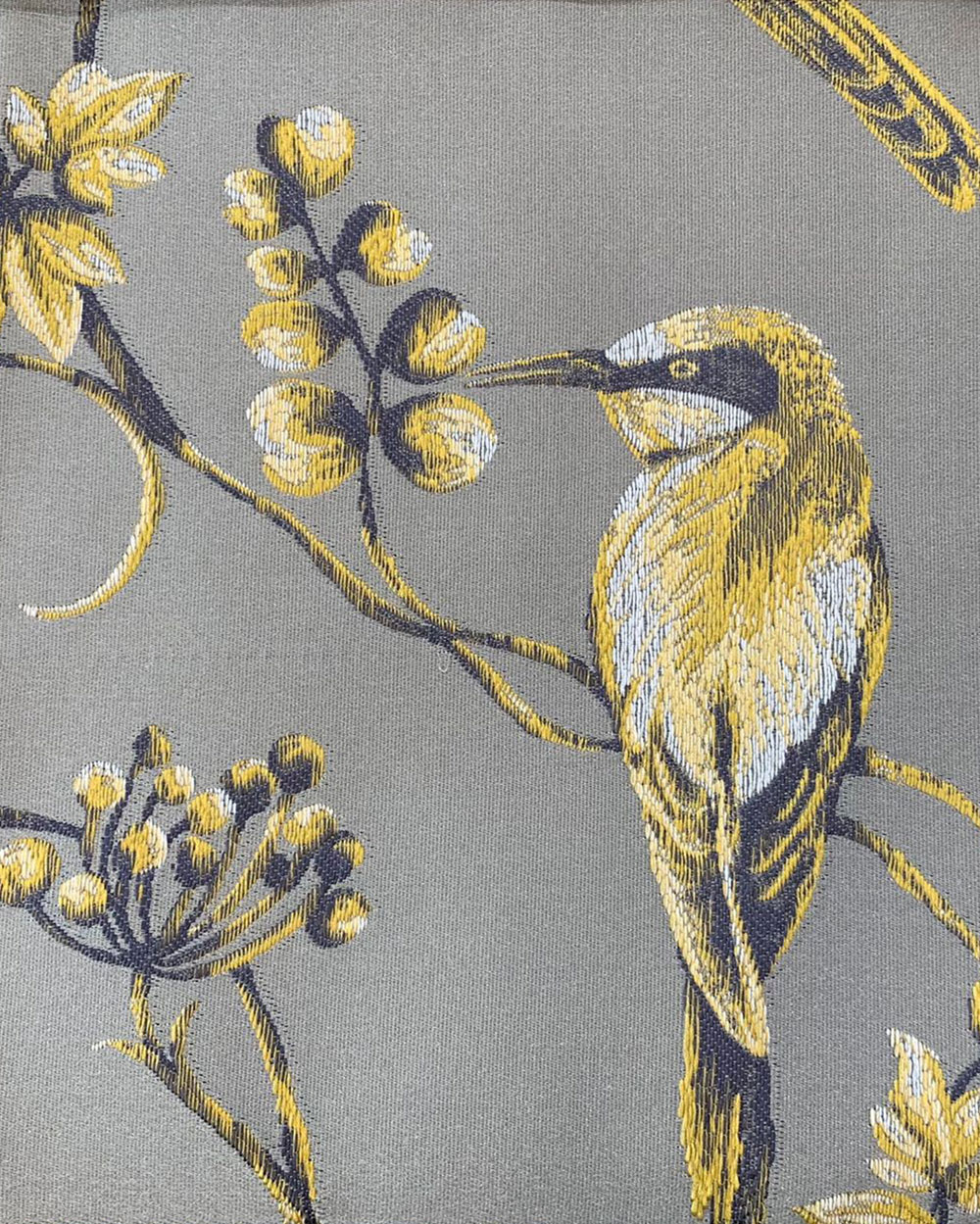 Tesatura draperie pasari Zari, gri -galben