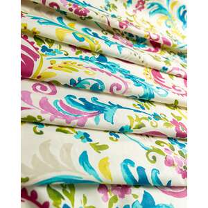 Tesatura draperie Chispas Coord, saten, flori, rosu, verde