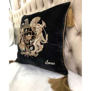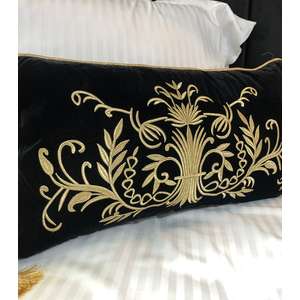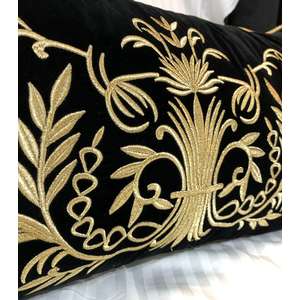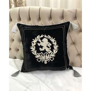 Fata de perna brodata manual Maharajah by Jaipur, 45x45 cm, negru cu broderie aurie