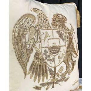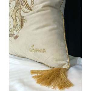 Fata de perna brodata manual Maharajah by Jaipur, 45x45 cm, crem cu broderie aurie