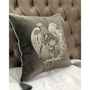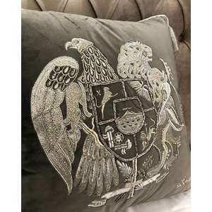 Fata de perna brodata manual Maharajah by Jaipur, 45x45 cm, gri cu broderie argintie