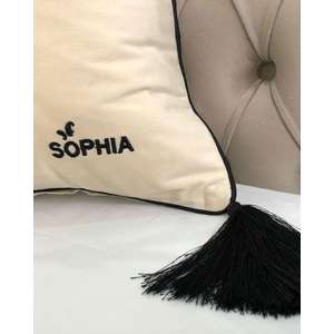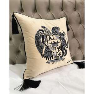 Fata de perna brodata manual Maharajah by Jaipur, 45x45 cm, crem cu broderie neagra
