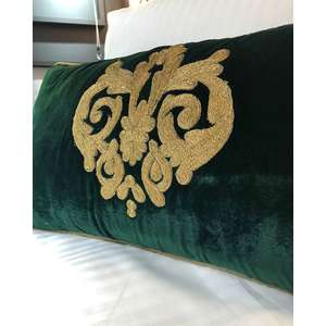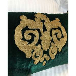 Fata de perna brodata manual Maharajah by Jaipur, 30x60 cm, verde cu broderie aurie