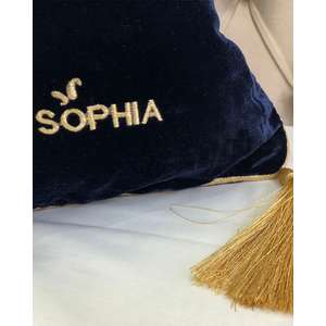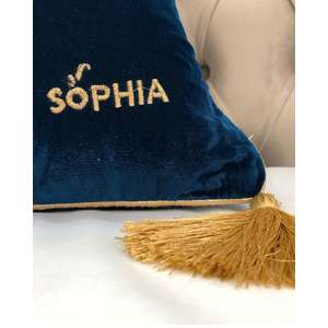 Fata de perna brodata manual Maharajah by Jaipur, 50x50 cm, albastru cu broderie aurie