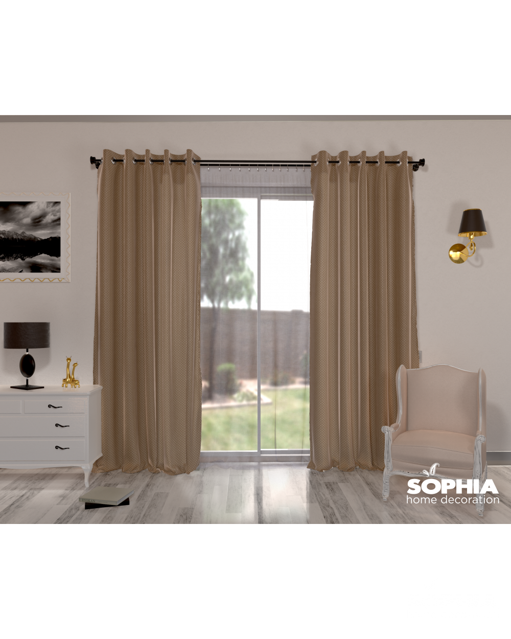 Tesatura draperie cu un model cu buline in stil shabby chic, confectionata din 50% bumbac si 50% poliester. Latimea acestui articol este 280 cm. Aceasta tesatura este perfecta pentru a infrumuseta orice incapere. Pretul este pentru metru liniar. Anul acesta se poarta punctele si pe draperii!