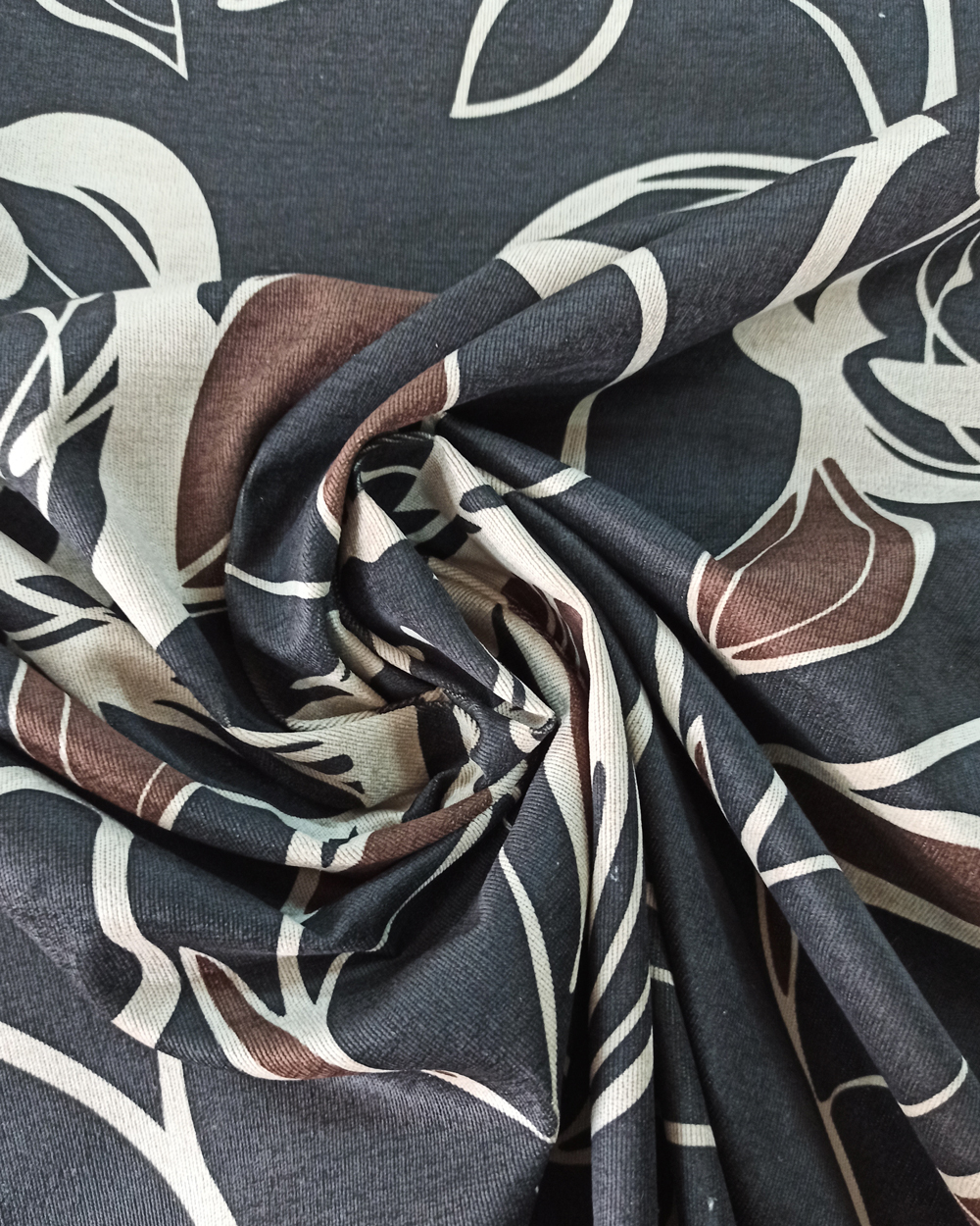 Țesătură draperie Bali , model flori, negru, maro