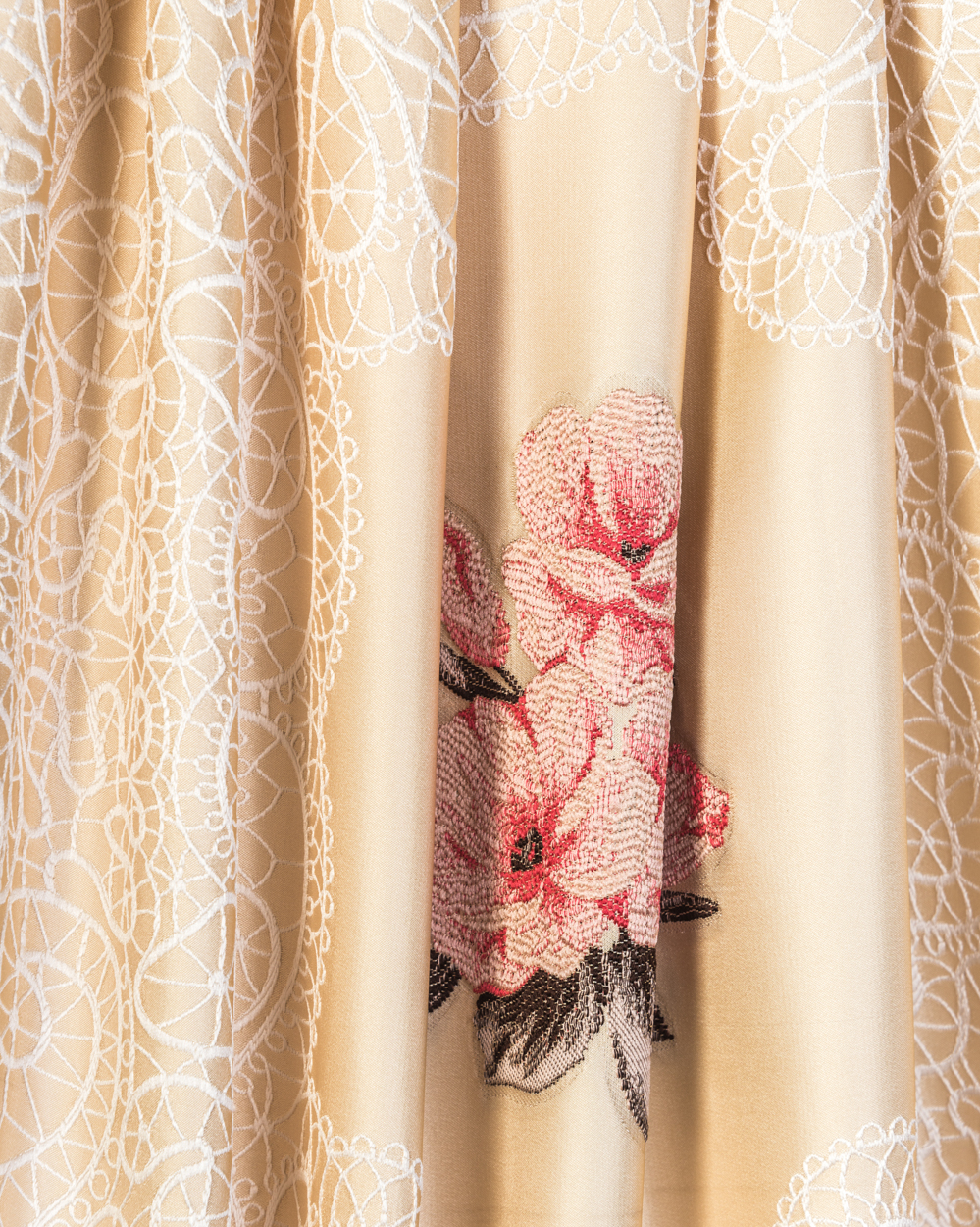 Tesatura draperie confectionata din 100% poliester. Latimea acestui material este 280 cm. Aceasta tesatura este perfecta pentru a infrumuseta orice incapere. Pretul este pentru metru liniar.