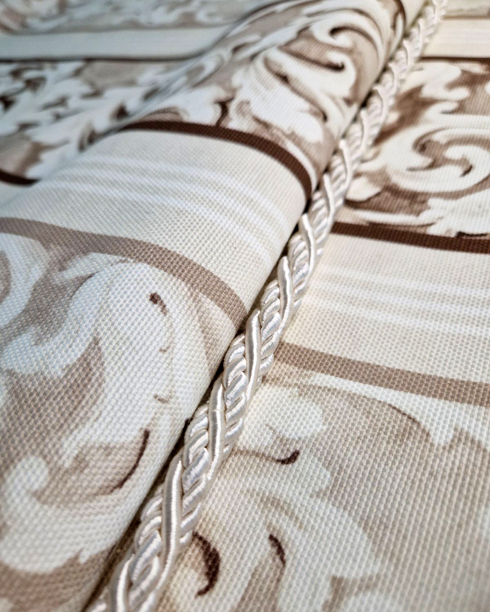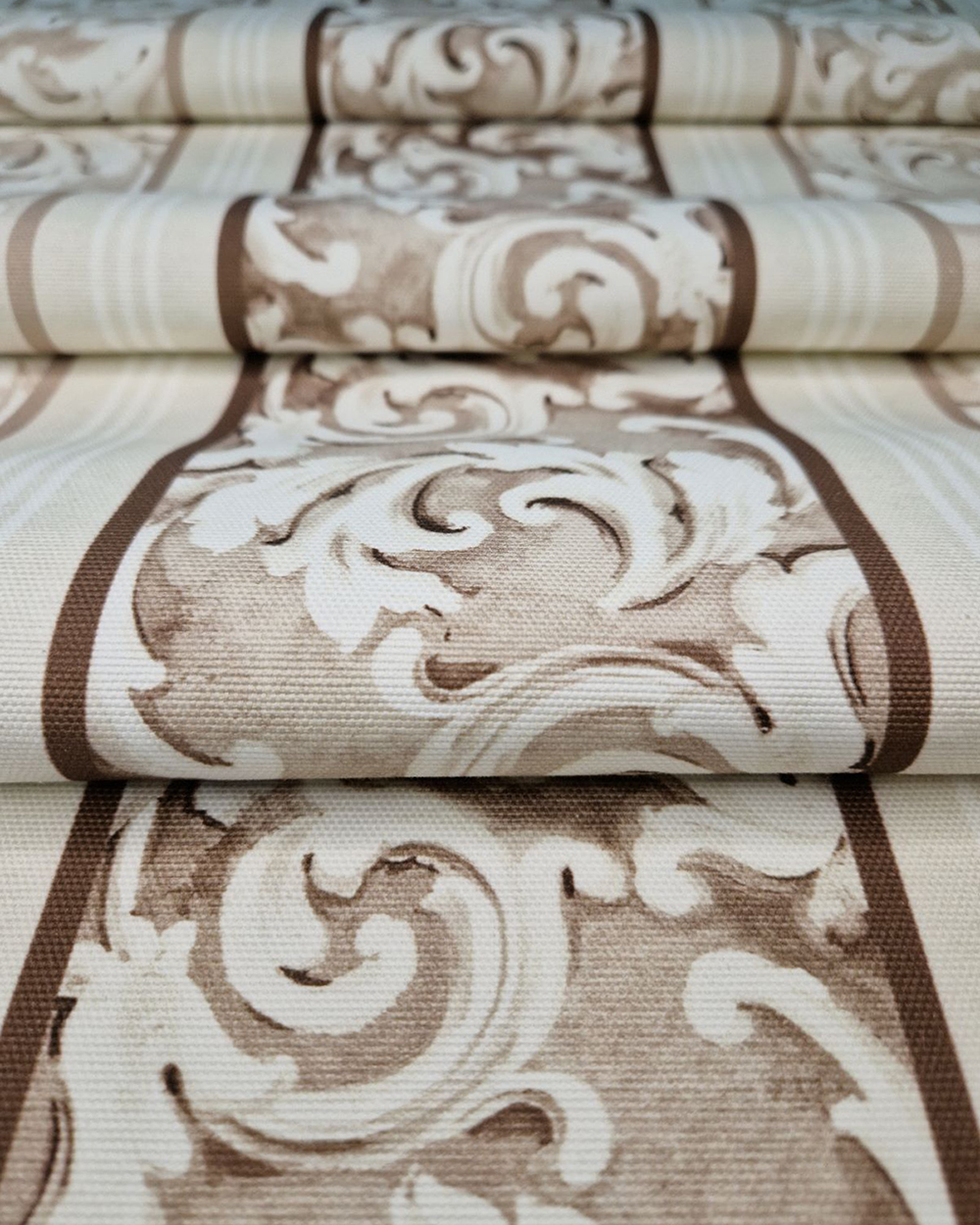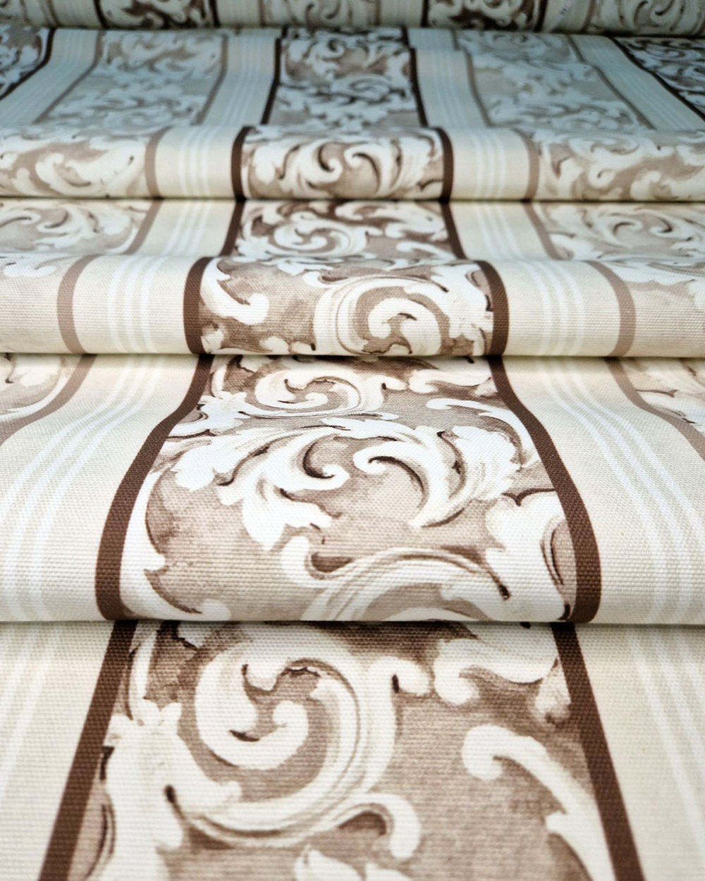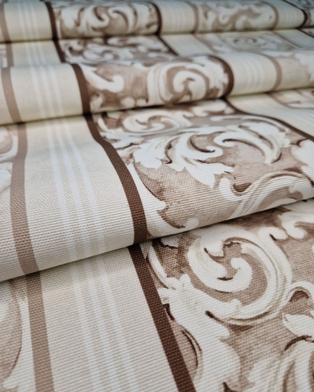 Tesatura draperie este confectionata din 65% bumbac si 35% poliester. Latimea acestui material este 280 cm. Aceasta tesatura este perfecta pentru a infrumuseta orice incapere. Pretul este pentru metru liniar.  Opulenta, stilul elegant si aspectul luxuriant al decorului ce aminteste de interioarele Toscanei te poarta intr-o lume unde viata se scurge discret iar soaptele aventurilor galante se ascund printre faldurile draperiei.