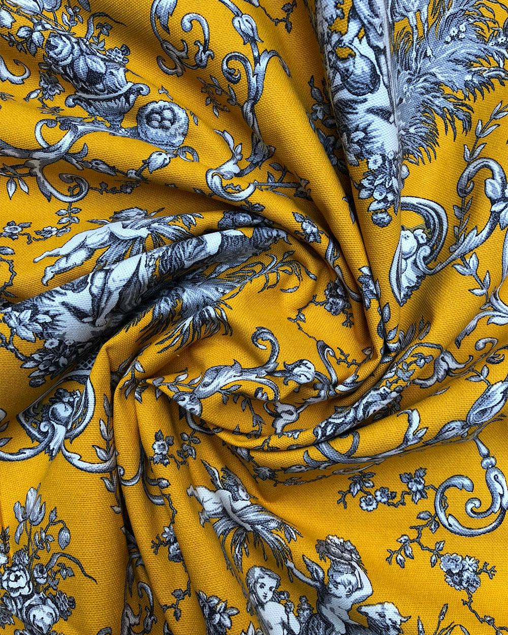 Tesatura draperie Toile de Jouy, galben - Editie Limitata