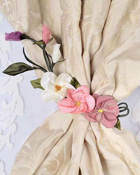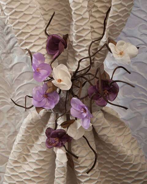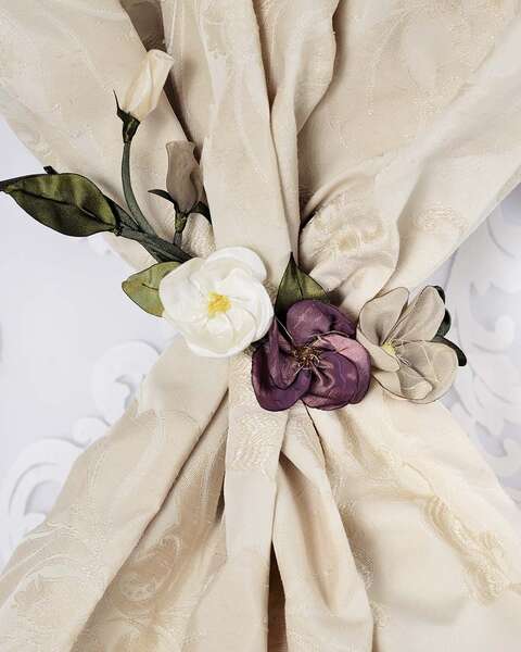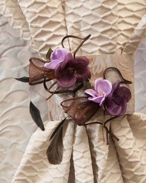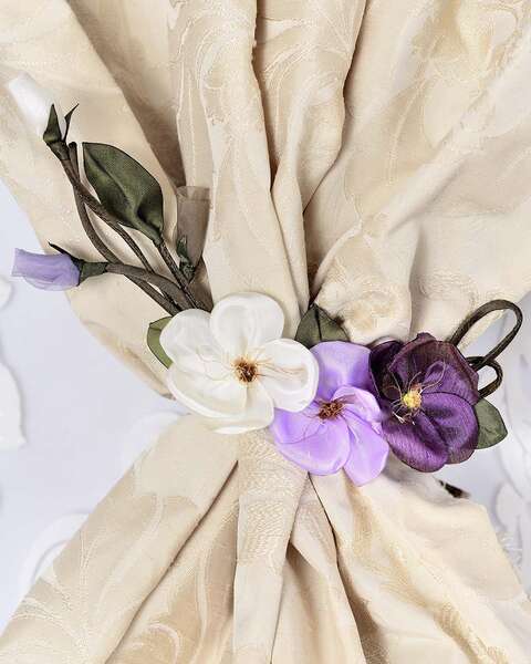 Accesoriu de prindere ramură 3 flori, alb, mov, bej