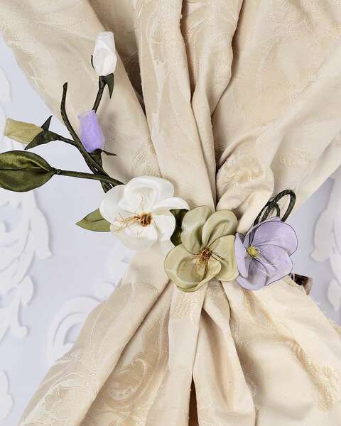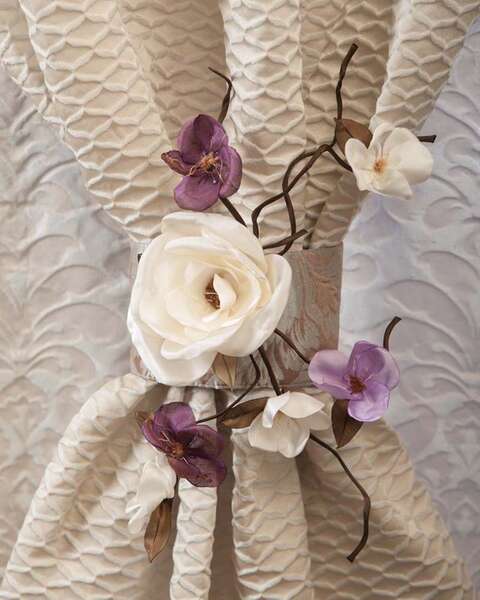 Accesoriu de prindere ramură 3 flori, alb, lila, bej