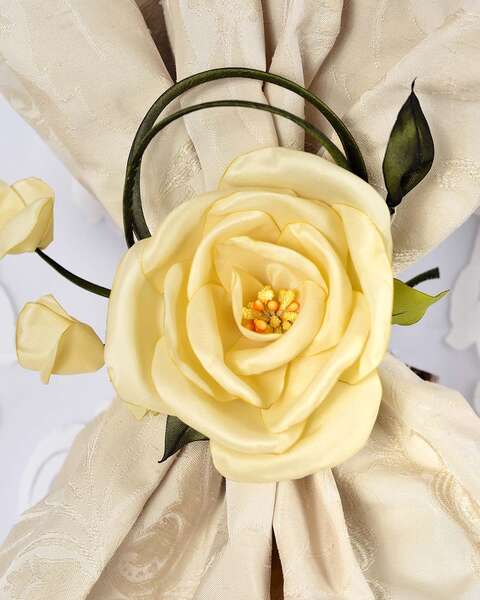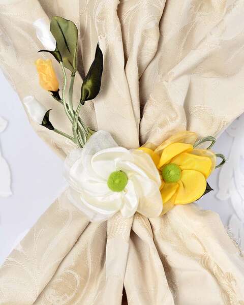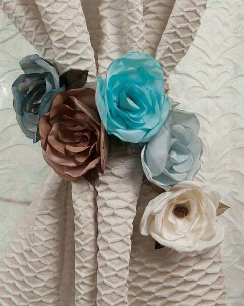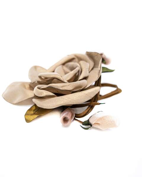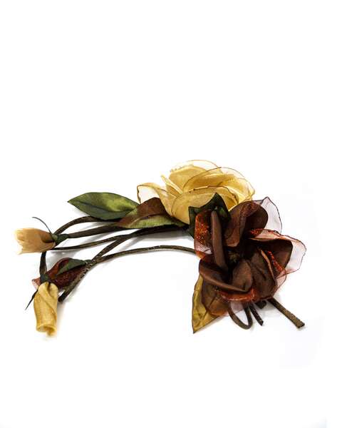 Accesoriu de prindere ramură 3 flori, alb, roșu, bej