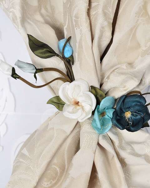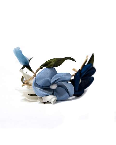 Accesoriu de prindere ramură 3 flori, alb, albastru