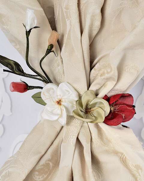 Accesoriu de prindere ramură 3 flori, alb, bej, roșu