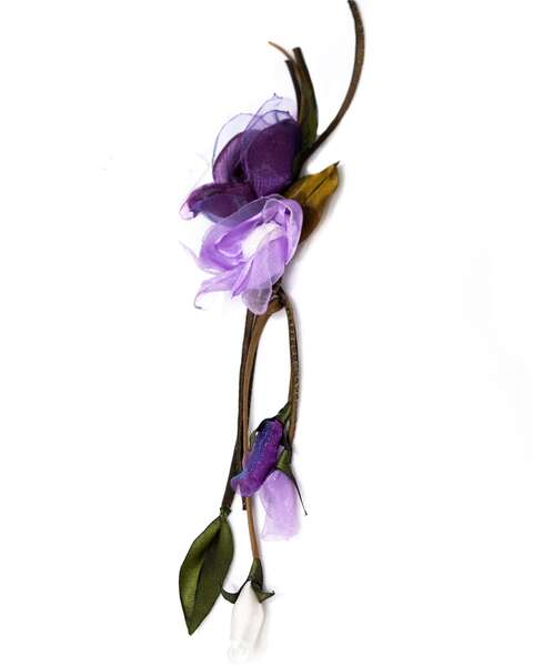 Accesoriu de prindere ramură 3 flori, alb, mov, bej