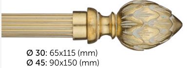 Acest capăt de galerie impresionează prin designul său elegant, inspirat din motive florale sculptate, cu un finisaj auriu patinat ce adaugă profunzime și rafinament. Este ideal pentru interioare clasice sau luxoase, în care detaliile decorative fac diferența.
