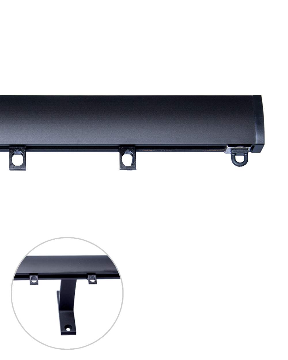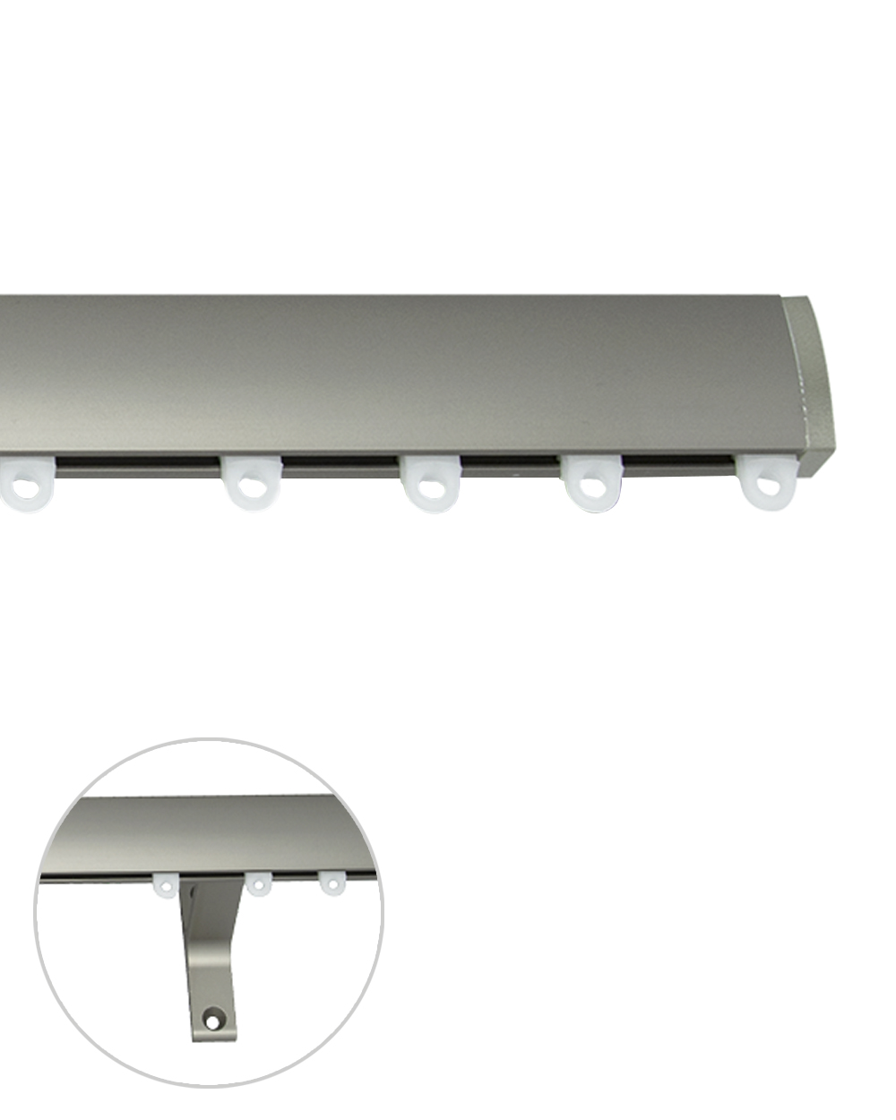 Pentru un control mai ușor al perdelei sau draperiei, șina poate fi configurată cu baghetă de tragere, disponibilă în variantă standard, din metacrilat sau din oțel, astfel încât sistemul să fie adaptat perfect nevoilor proiectului.
