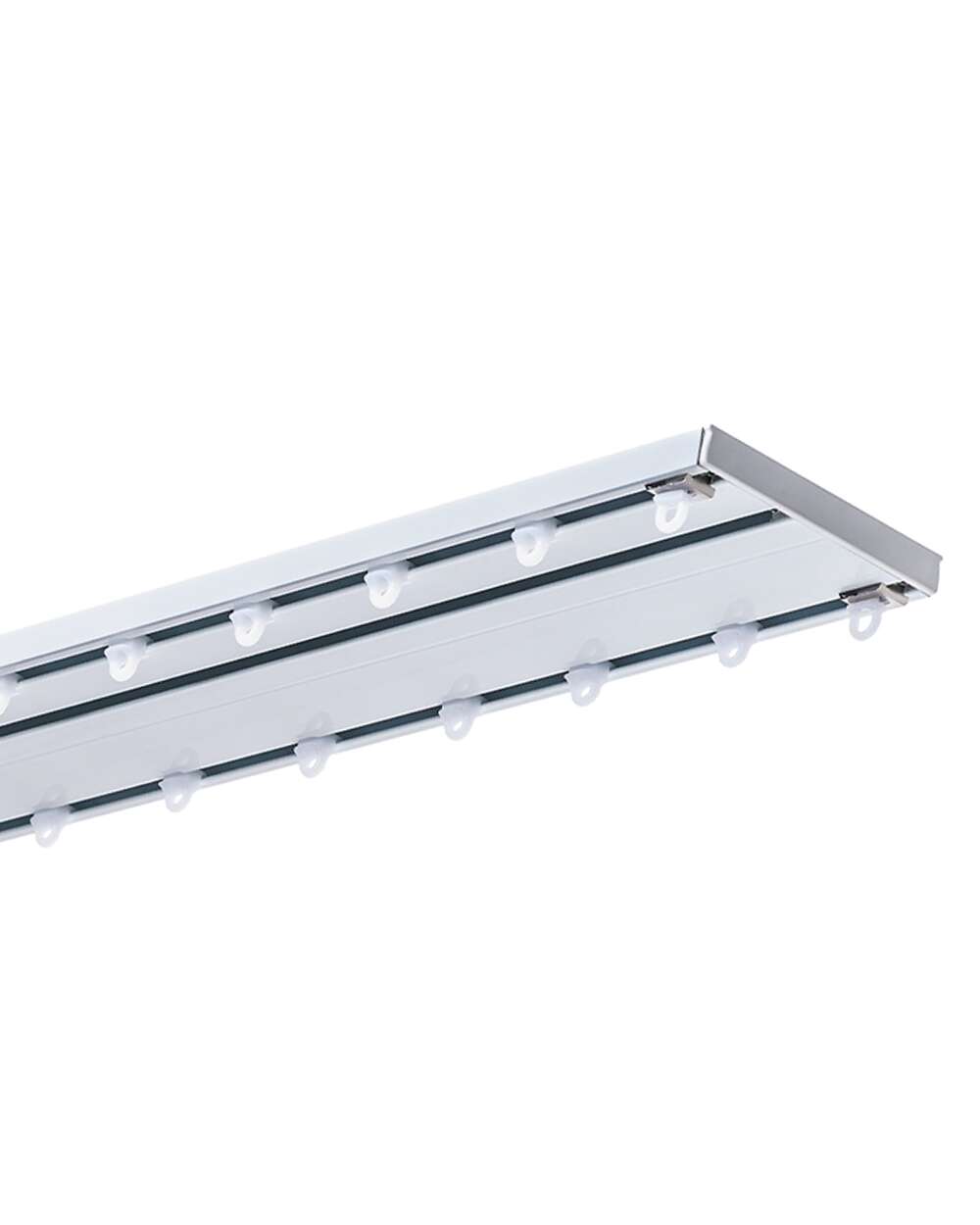 Șina Metalică SIENA 3 este un sistem triplu premium, cu trei canale independente, conceput pentru montarea simultană a perdelei, draperiei și a unui strat suplimentar decorativ sau funcțional, într-un design modern și minimalist. Această variantă fără șnur funcționează prin glisare manuală, fiind extrem de simplă, silențioasă și fiabilă.