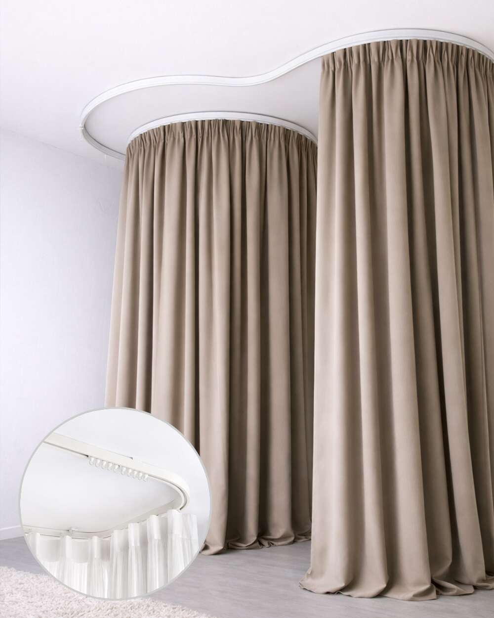Cele 14 elemente de culisare pe fiecare metru liniar permit o distribuție uniformă a materialului textil și o deplasare constantă a perdelei, chiar și pe trasee curbate sau neregulate. Soluția este ideală pentru proiecte personalizate care necesită un finisaj curat și o integrare perfectă în designul interior.