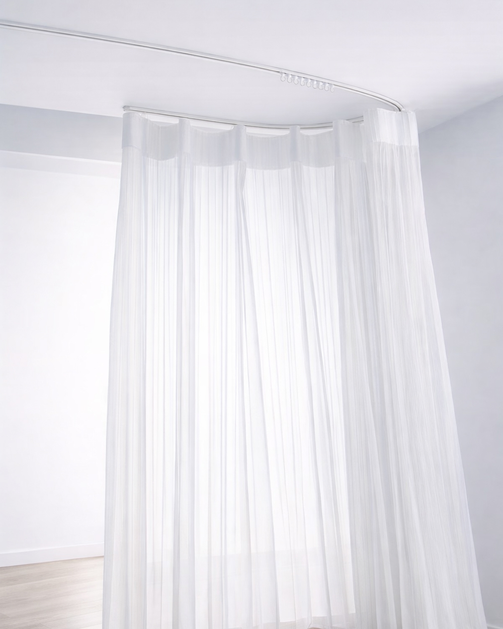 Șina Metalică SIENA 1 fără șnur, cu curbare continuă, este soluția ideală pentru perdele ușoare și medii, în special în cazul ferestrelor pe colț sau al configurațiilor în L. Datorită curburii continue, perdeaua se deplasează lin și uniform pe întreaga lungime a șinei, inclusiv în zona colțului, fără blocaje sau întreruperi.